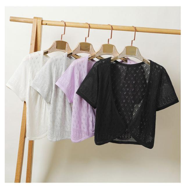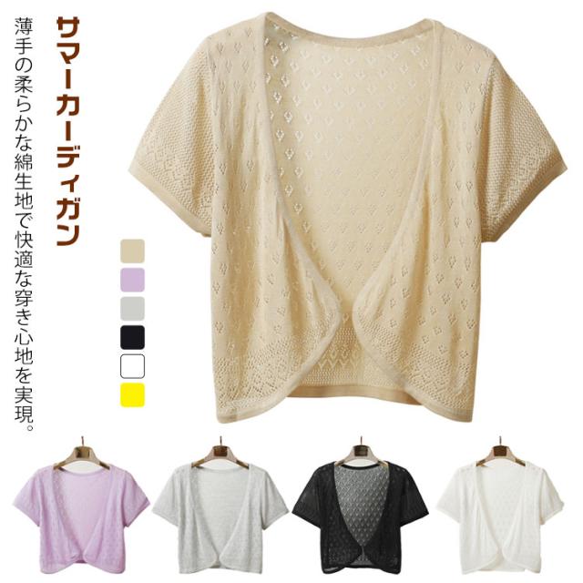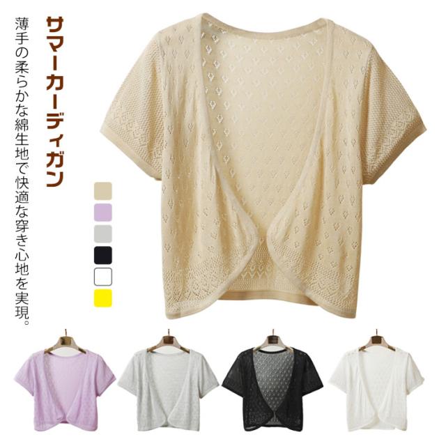 無地 半袖カーディガン レディース 薄手 サマーニット 透かし編み サマーカーディガン サマーカーディガン 春夏 カーディガン ゆったり サマーニット 羽織り かわいい ふんわり 透け ニット