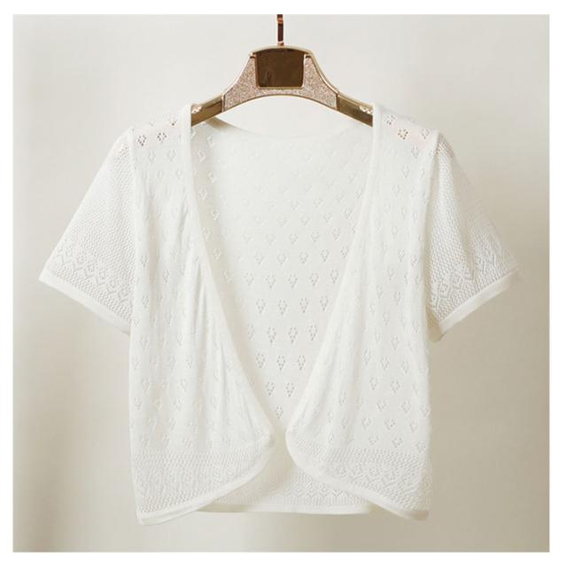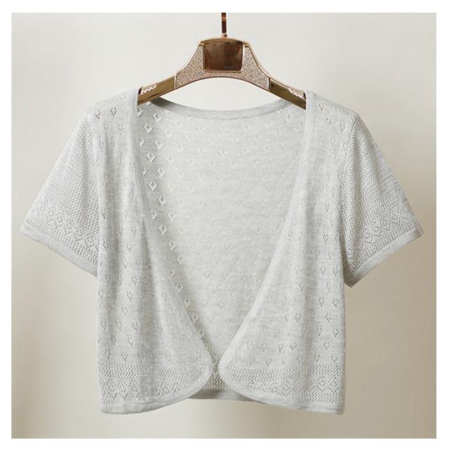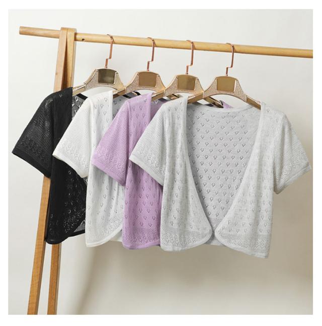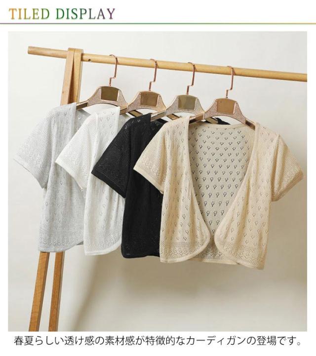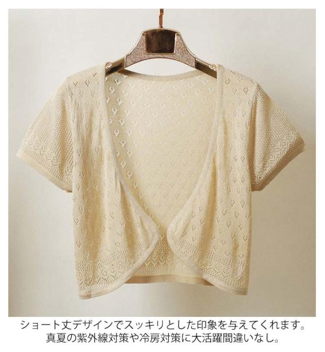 サマーカーディガン 半袖カーディガン レディース かわいい ボレロ 透かし編み ゆったり サマーカーディガン 春夏 羽織り 無地 薄手 カーディガン サマーニット ふんわり 透け ニット