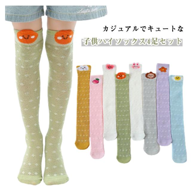 | カジュアルでキュートな子供ハイソックス4足セット。 肌馴染みの良いやわらかな履き心地! お子さんが喜ぶ可愛いデザインを揃えました! 通気性優れるメッシュ、暑い時におすすめ! | |