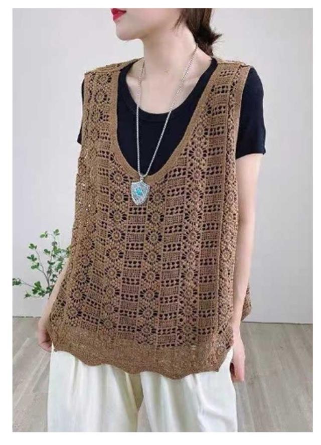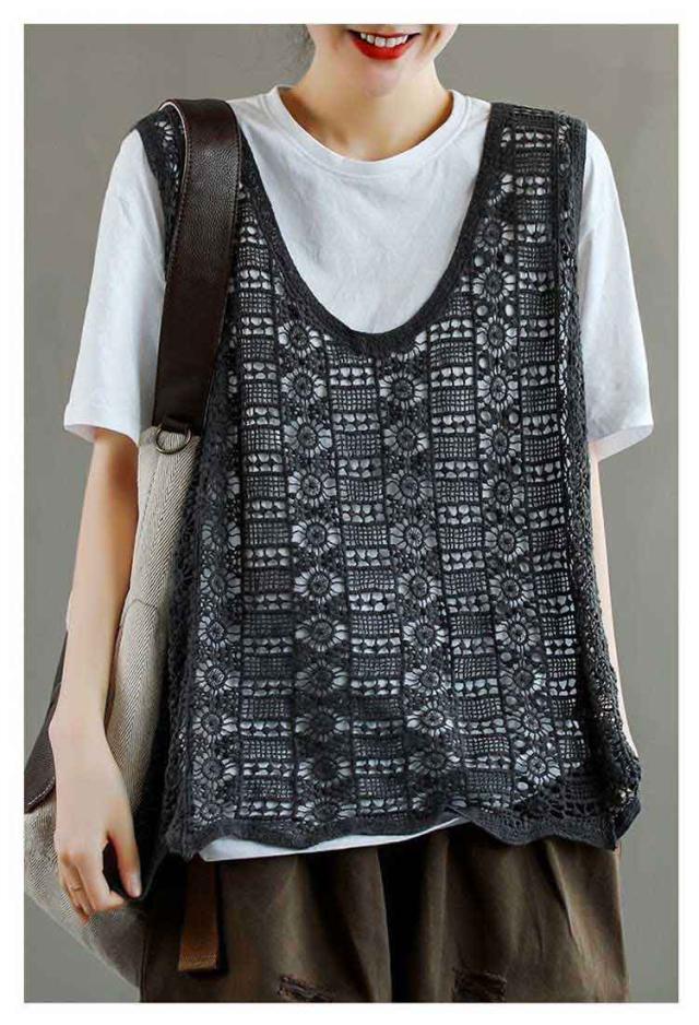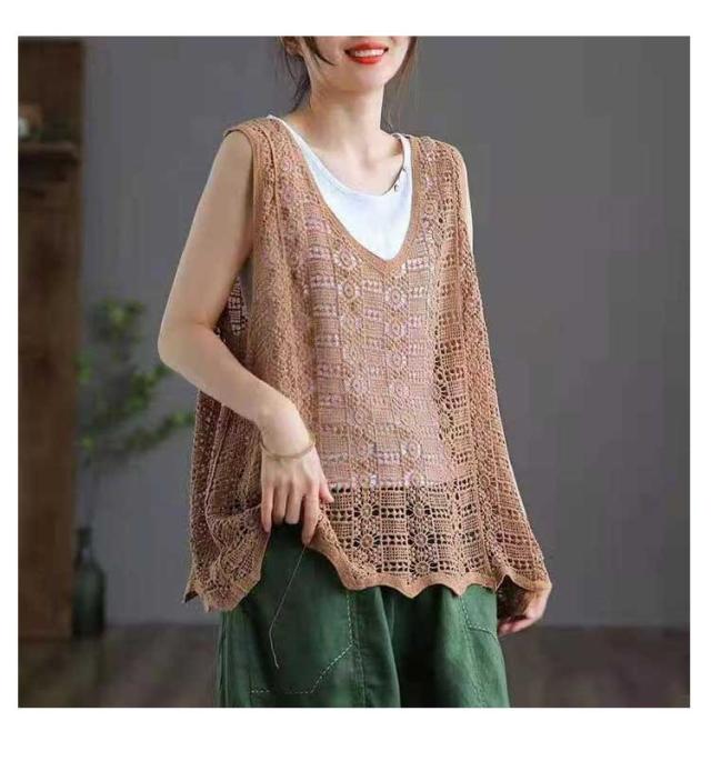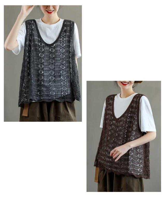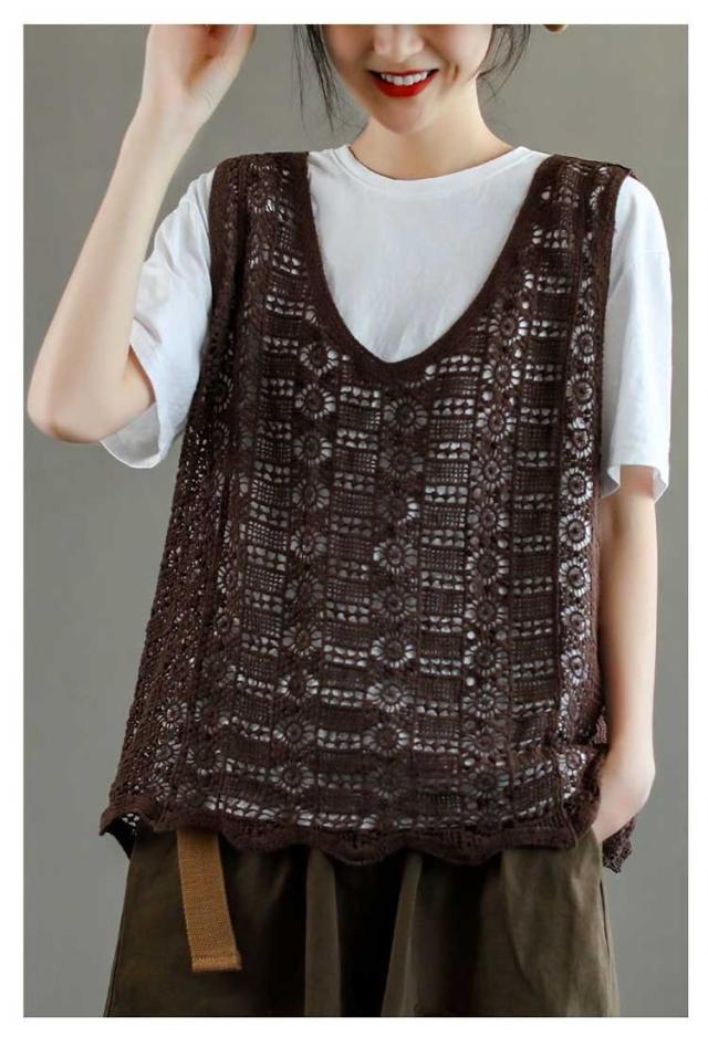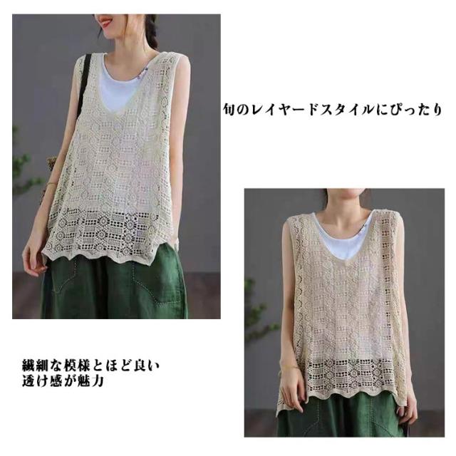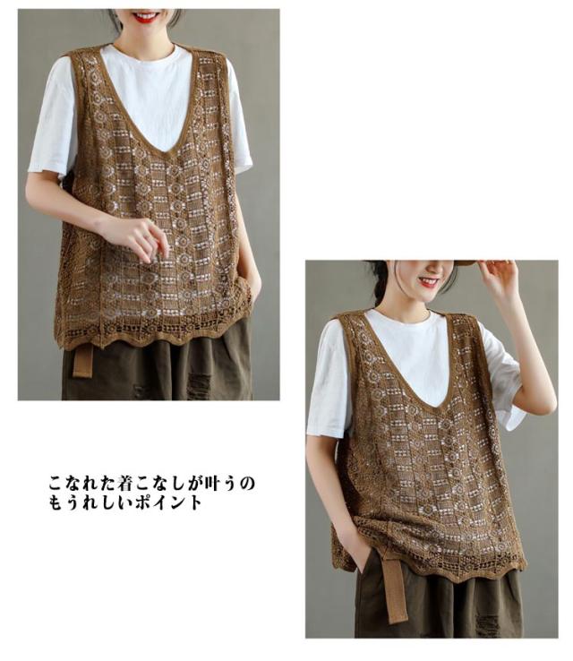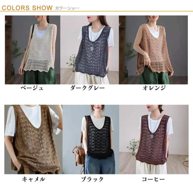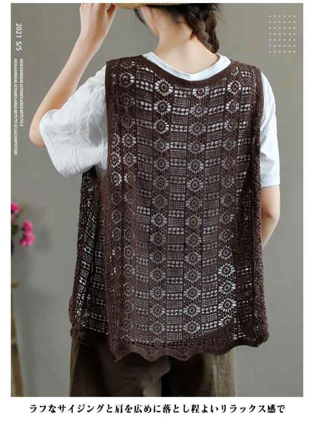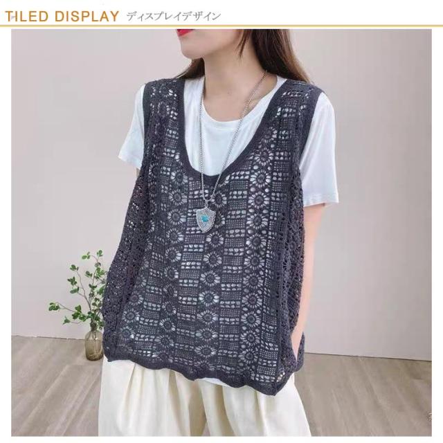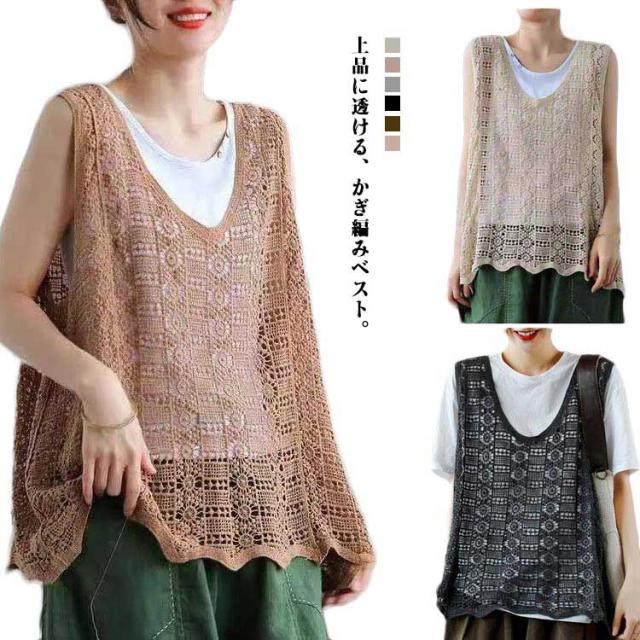 かぎ編み レディース ベスト ベスト クロシェ編み ニットベスト トップス プルオーバー 春夏 カジュアル ベスト 重ね着 ニットベスト きれいめ ニットベスト レイヤード カジュアル おしゃれ 無地