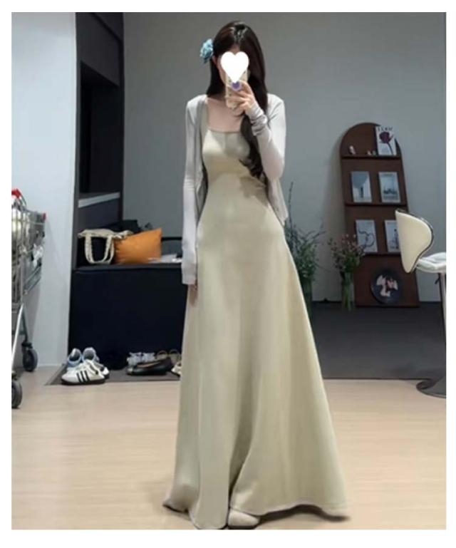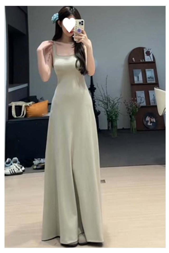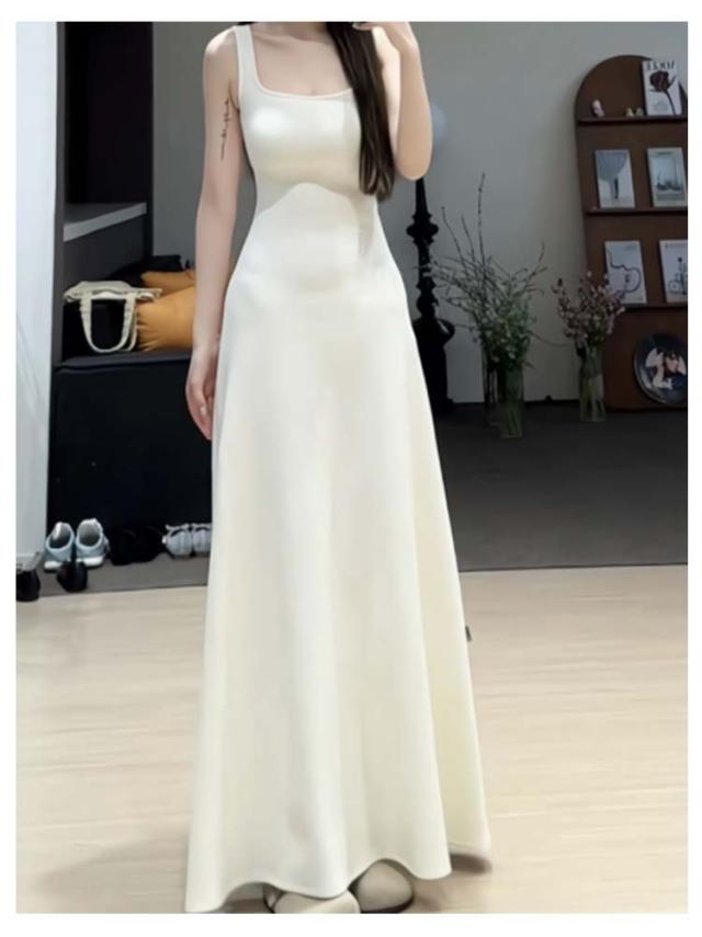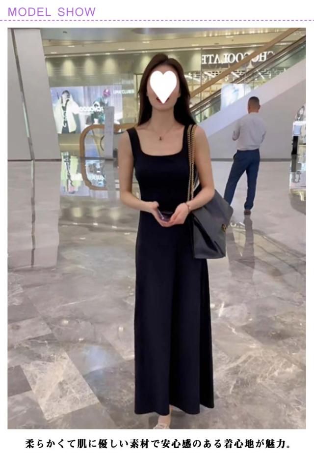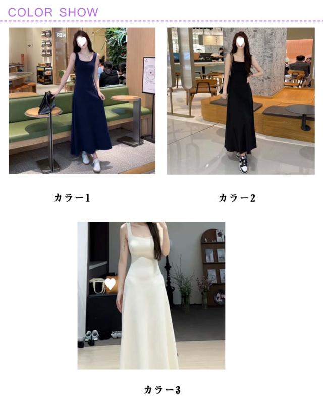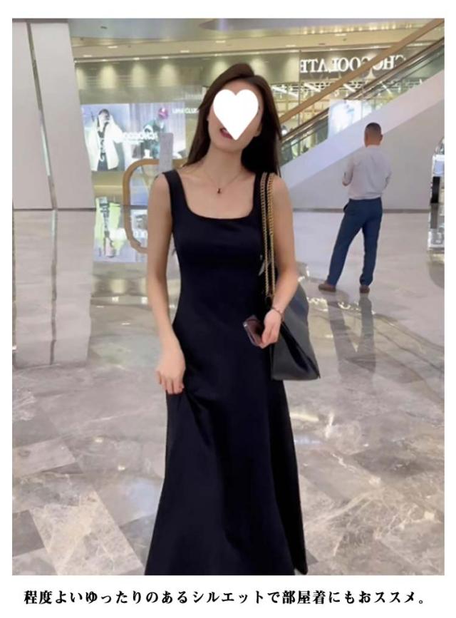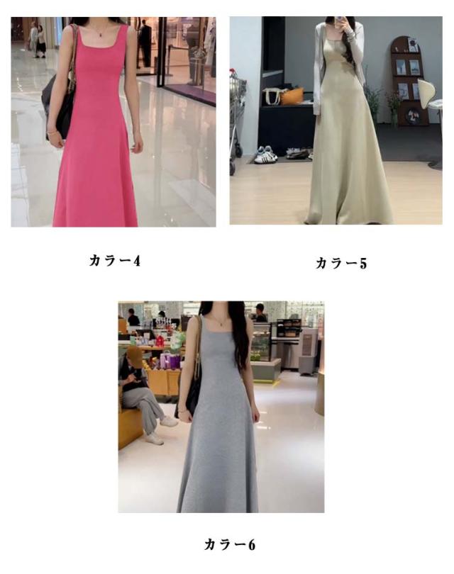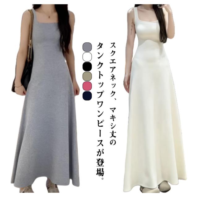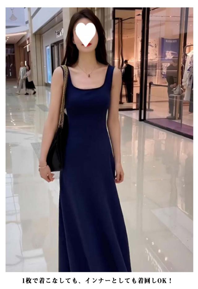 ワンピース レイヤード ロングワンピース マキシ丈 タンクトップ ワンピース スクエアネック ロング丈 スクエアネック ワンピース インナーワンピース ノースリーブ 着?せ S M L