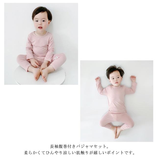 薄手 Tシャツ パジャマ 部屋着 腹巻き付き 涼しい モダール 夏用 上下セット ベビー ひんやり 長袖 部屋着 ベビー 長袖長ズボン ルームウェア 冷房対策 女の子 男の子 73 80 90 100cm