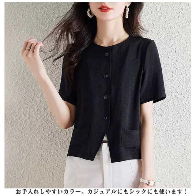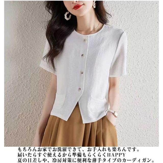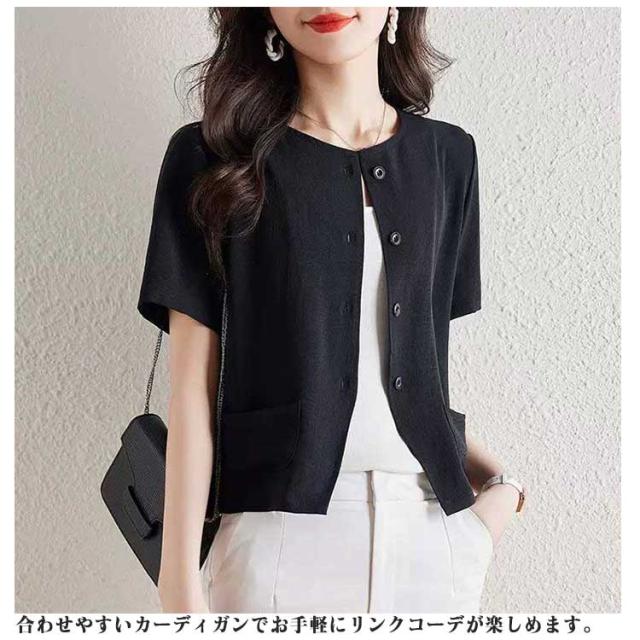 羽織り レディース 半袖 薄手 接触冷感 カーディガン 綿麻風 半袖ジャケット カーディガン 日焼け防止 冷房対策トップス 大きいサイズ 通勤 シンプル お洒落 春夏 ビジネス エレガント フォーマル 黒