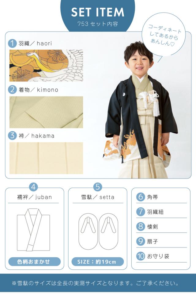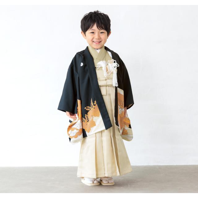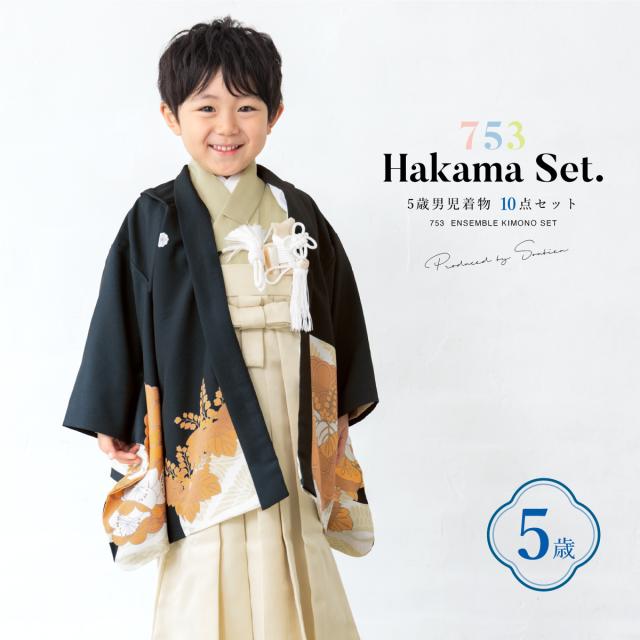 七五三 着物 5歳 販売 2025 五歳 袴セット 10点セット 羽織 着物 半襦袢 袴帯 羽織紐 扇子 懐剣 お守り袋 雪駄 セット 男の子 黒 ベージュ 和服 男児 送料無料