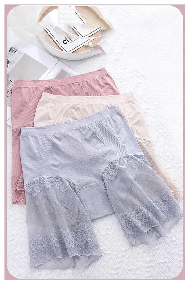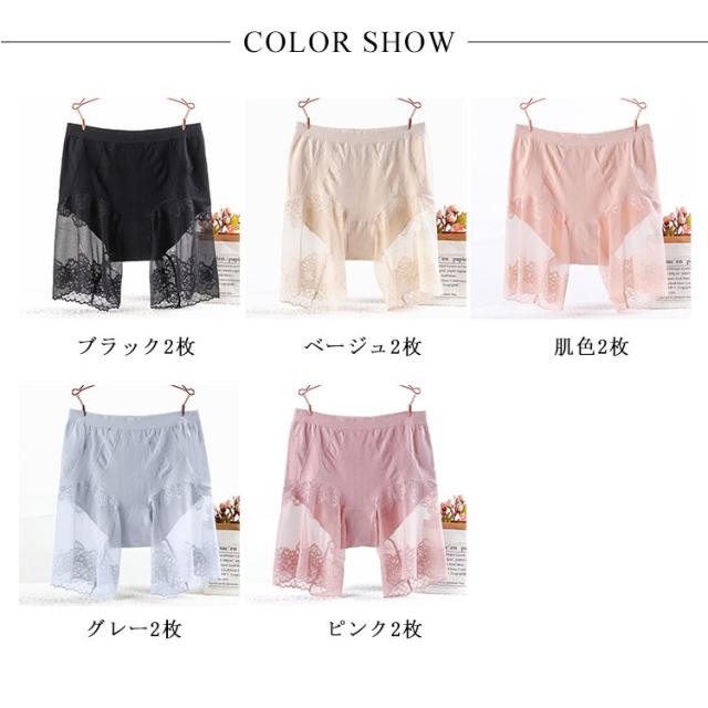 | お腹押え・ヒップアップ・1枚履きOK♪ パンチラ防止が叶えてくれるセミロングペチショーツ、夏でも蒸れなくて快適な穿き心地。 太もも部分はフェミニンなレース素材、スレ防止しながら、ワンピースやスカートの下に穿いたら安心感倍増、ファッションを気軽に楽しめます。 クロッチ部分の内側は、肌あたりの良いコットン素材で、2枚仕立てになっているので一枚履きOKです。 | |
