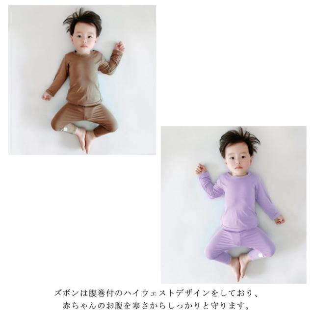 上下セット パジャマ 女の子 部屋着 涼しい ひんやり モダール ルームウェア 腹巻き付き 長袖 トップス ベビー Tシャツ 夏用 長袖長ズボン 部屋着 冷房対策 ベビー 男の子 73 80 90 100cm