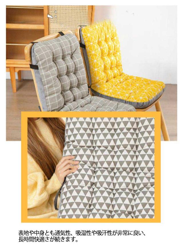 | 背もたれ付き 座面クッション 一体型 高品質の綿を厳選してふんわり感が優れています。 ふわふわで回復力も良い、長い間座っても変形しません。 表地や中身とも通気性、吸湿性や吸汗性が非常に良い、長時間快適さが続きます。 健康な素材で子供にも安心的にご使用頂きます。 落ち着いた配色でどんな部屋にもマッチやすい。リビングのイメージアップにも、車やカフェのインテリアとして、オフェスにの休憩にもお勧めです。 | |