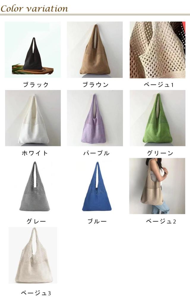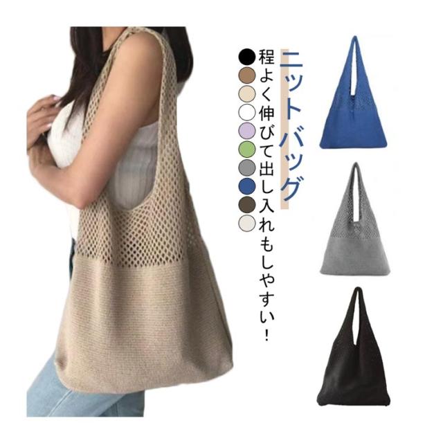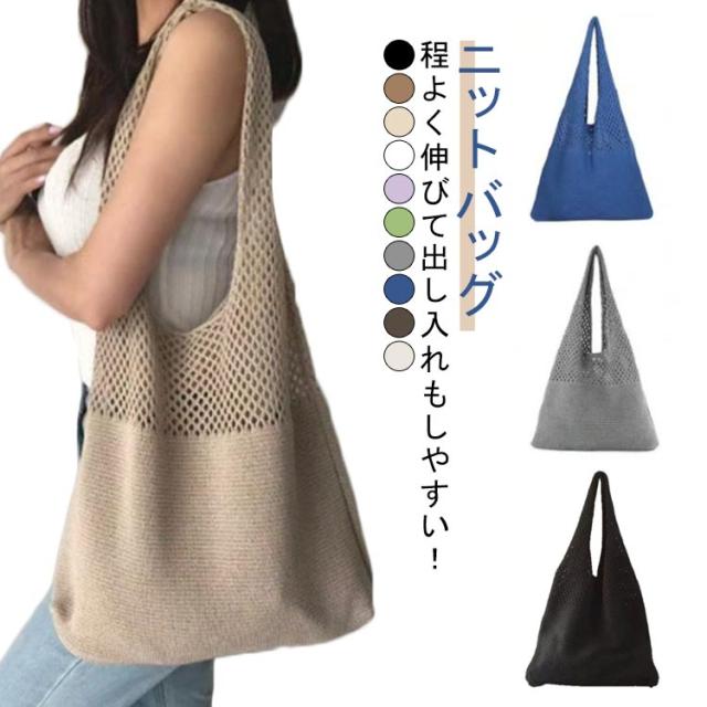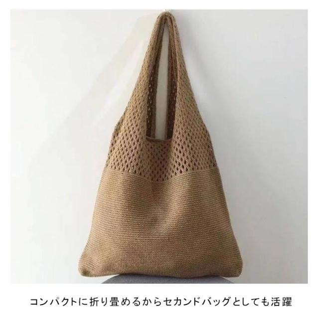 夏 bag ニットトートバッグ 秋 ニットバッグ 春 かぎ編みバッグ かごバッグ トートバッグ 編みバッグ ニット編み 軽量 ニットトートバッグ 透かし編み サマーバッグ あみバック 肩掛け 大人 お出かけ 折り畳み