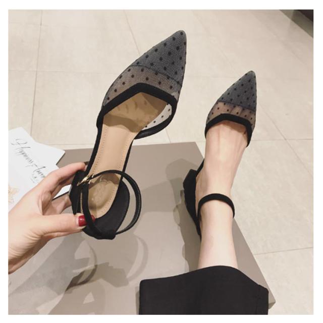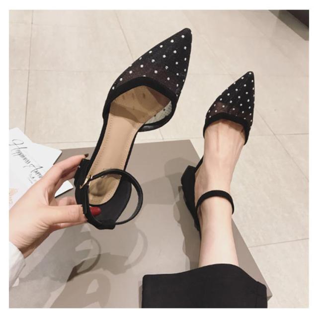 パンプス パンプス ポインテッドトゥ ストラップ ローヒール 美脚 ドット柄 痛くない アンクルストラップ オフィス 3センチ とんがり 走れる 通勤 シースルー 通勤 通学 柔らか 水玉柄 春 夏