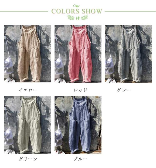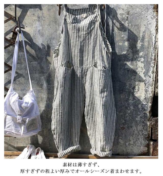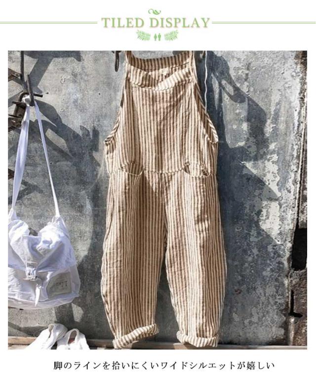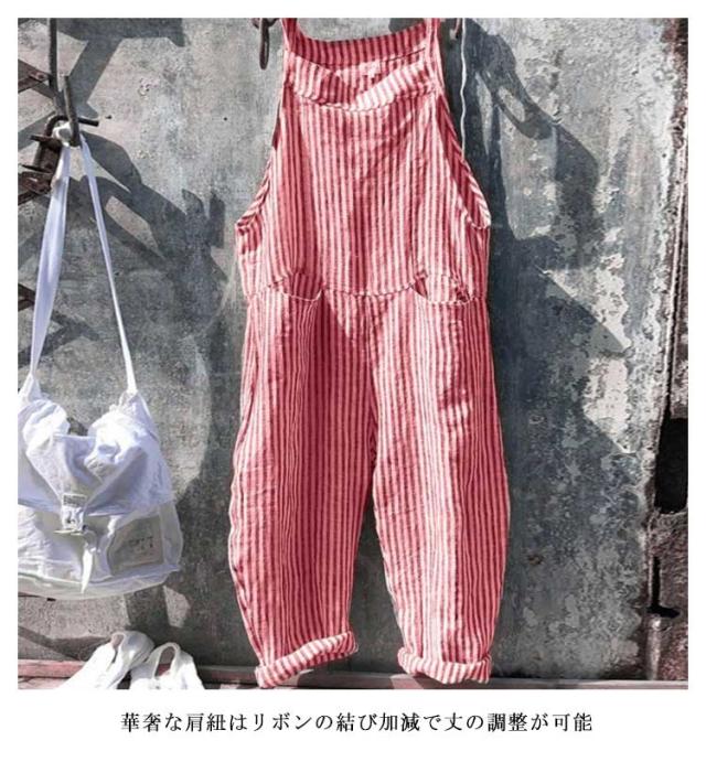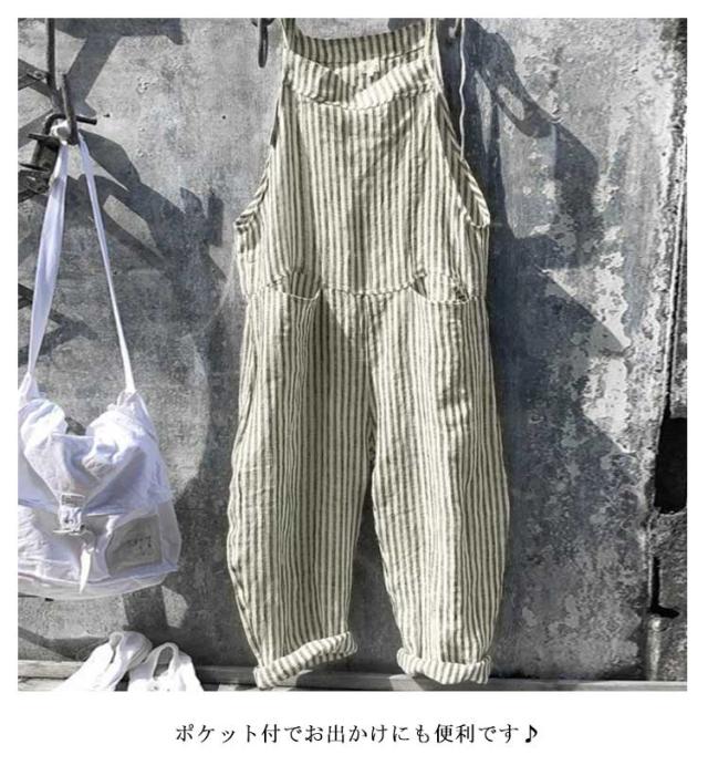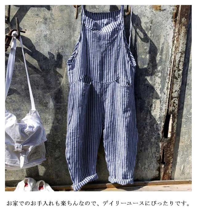 ロング丈 オールインワン ワイドパンツ パンツ サロペット オーバーオール 美脚 ストライプ柄 九分丈 レディース ポケット付き 美脚 ゆったり 対応 春 夏 秋 通勤 通学 体型カバー 可愛い キャミサロペット