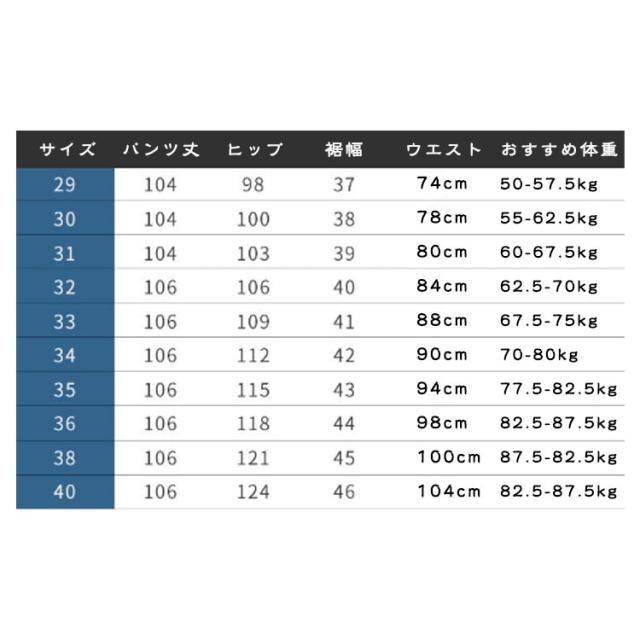 | サイズ | 29 30 31 32 33 34 35 36 38 40 |