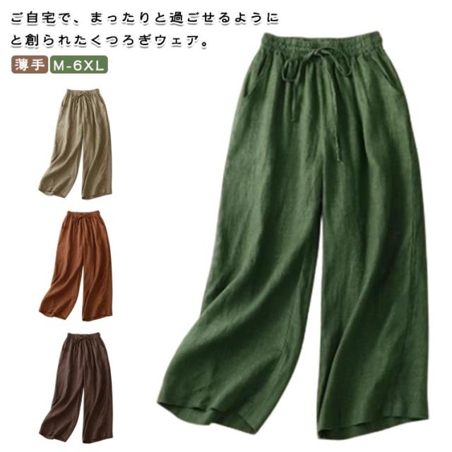 ステテコ 麻 レディース ルームウェア リラックスパンツ 涼感 ルームパンツ 綿 九分丈 ボトム ウエストゴム ステテコ ハーフパンツ ワンドパンツ 薄手 無地 ゆるパンツ 美脚パンツ 涼しい 涼感インナー 部屋着 春 夏 ゆったり