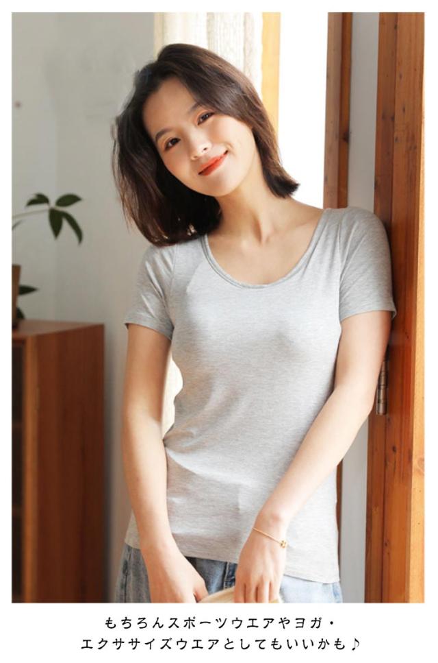 無地tシャツ カップ付き 夏 半袖 きれいめ カップ付きtシャツ Tシャツ 半袖tシャツ カップ付き カップ付 無地tシャツ インナーシャツ インナーtシャツ 女性服 無地 uネック カットソー トップス ルームウェア 楽ちん 速乾 シンプル ヨガ おしゃれ