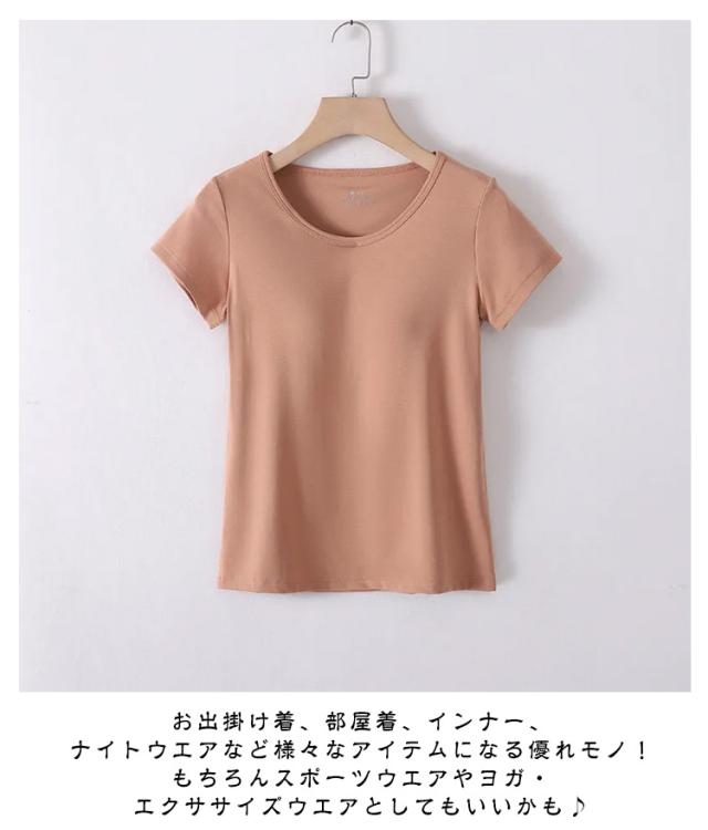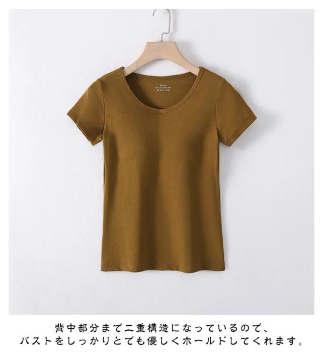 カジュアル レディース 半袖 インナーシャツ 無地tシャツ 夏 半袖tシャツ Tシャツ 無地 無地tシャツ カップ付き カップ付 ルームウェア 薄手 インナーtシャツ カップ付き カップ付きtシャツ カットソー トップス きれいめ 楽ちん シンプル ヨガ おしゃれ