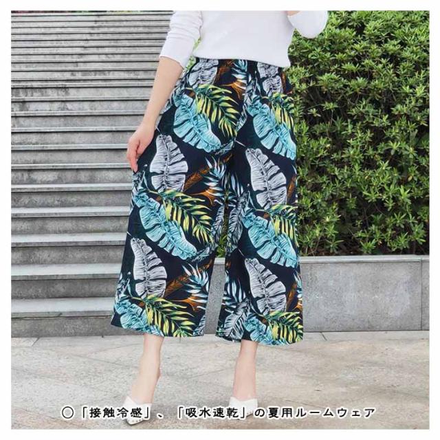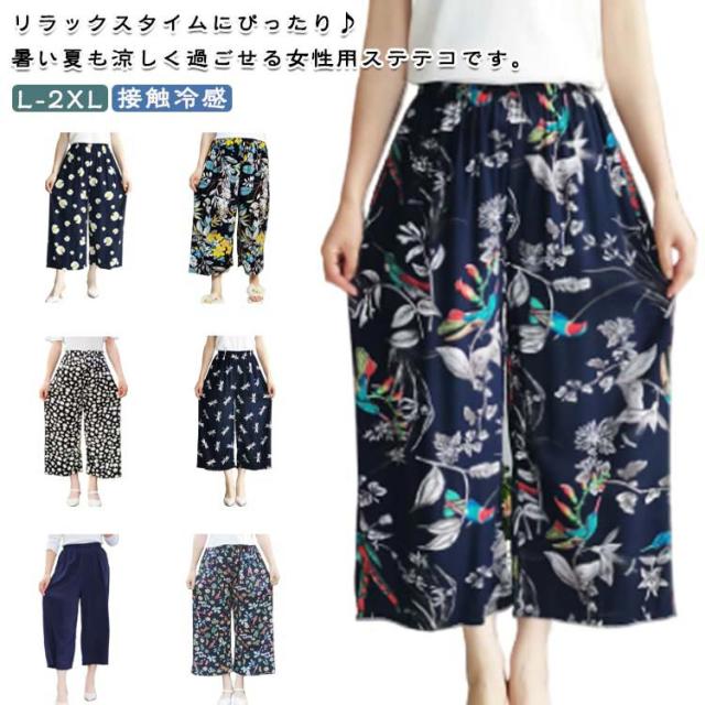 ひざ下 ワンドパンツ 部屋着 パジャマ 接触冷感 レディース 夏 ルームパンツ カプリパンツ ステテコ 夏用 イージーパンツ ステテコ ハイウエスト ルームウェア 春 冷感 9分丈 ズボン ボトムス リラックス かわいい カジュアル