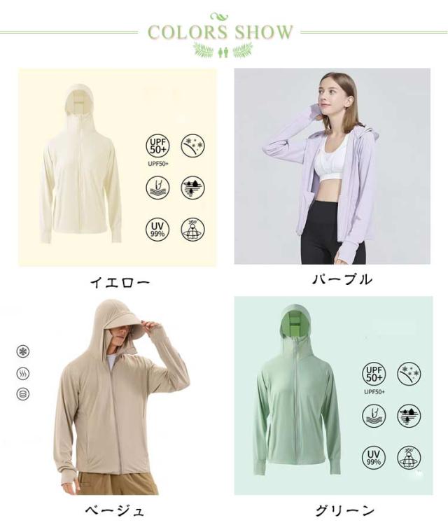 | 生地が薄手で柔らかくなめらかで、羽織るだけで簡単UVカット、紫外線が強く真夏には欠かせないUV対策パーカーです。 お肌に有害な紫外線を98%以上カット!長く改良されたツバは紫外線カットにさらに有効になります。 長袖が指穴付きなので手の甲までしっかりガードできます。 速乾性抜群で濡れても気にならないから、海でも使いやすい!ストレッチで動きやすく、スポーツ時にも便利!洗ってもすぐ乾くから、旅行時にも! また、軽量・コンパクトでかばんの中にも入れとけて、持ち運びもラクラク!サラッとした触り心地も嬉しい機能。いい着心地でストレスフリ! | |