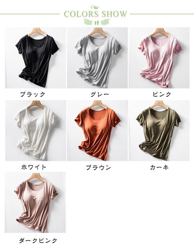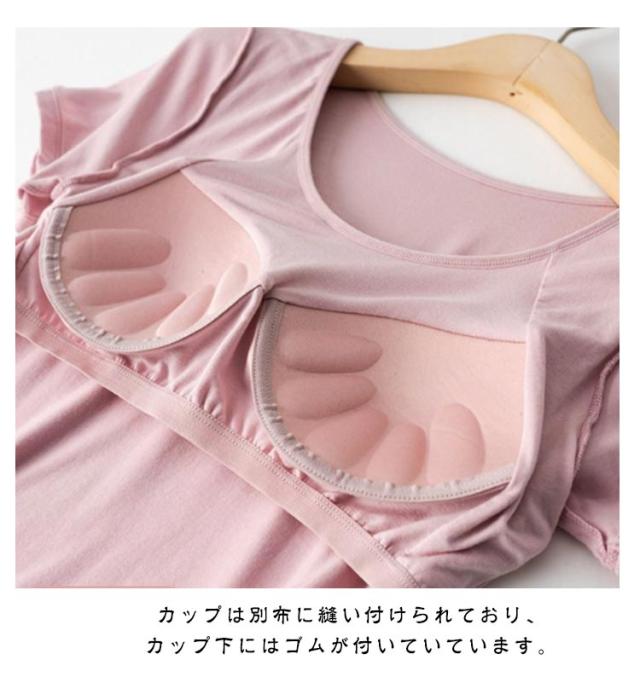 インナーtシャツ 半袖tシャツ 無地tシャツ Tシャツ レディース カップ付きtシャツ 半袖 夏 インナーシャツ カップ付き ルームウェア 無地tシャツ 女性服 カップ付き 無地 uネック カットソー トップス きれいめ 楽ちん 速乾 シンプル ヨガ おしゃれ