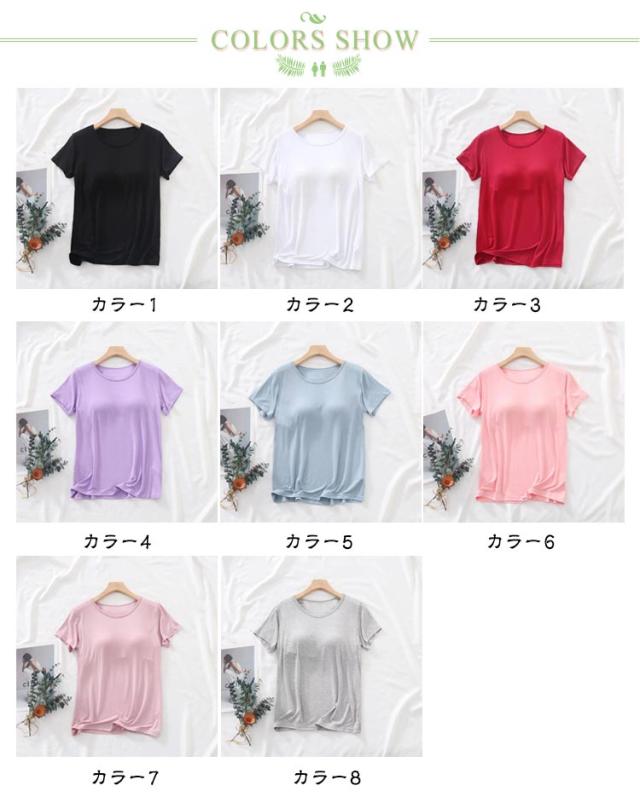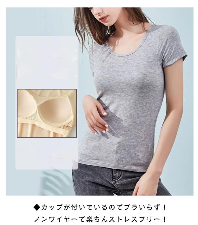 ブラトップインナー 部屋着 カップ付き レディース ルームウェア 半袖インナー トップス カップ付 Tシャツ カットソー tシャツ 夏 ブラカップ付き レディース 無地 ブラ付き インナー パジャマ 定番 シンプル カップ付き ゆったり カジュアル おしゃれ