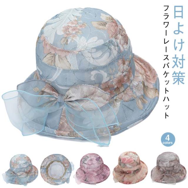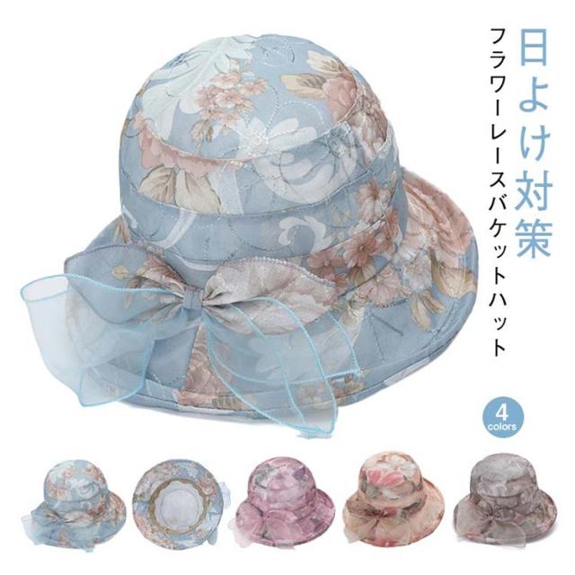 | フラワーレースバケットハット 花柄あしらったお帽子でお顔明るく♪ つば広のデザイン、紫外線対策にも◎ 大きめのリボン付き、ファッションのワンポイントに◎ 軽量素材を使用。折りたたんで持ち運びも楽々。 | |