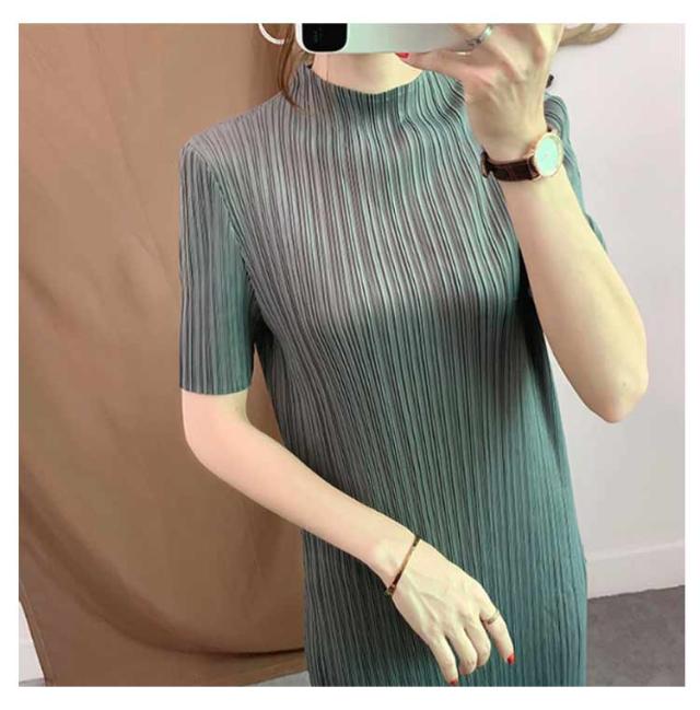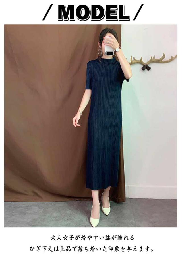 プリーツワンピース 半袖 きれいめ ロング丈 細プリーツ 夏ワンピ プリーツ ワンピース ボトルネック シンプル 大人 女性 着?せ 夏 夏服 ワンピース カジュアル おしゃれ プリーツ 半袖ワンピース ストレート Iライン