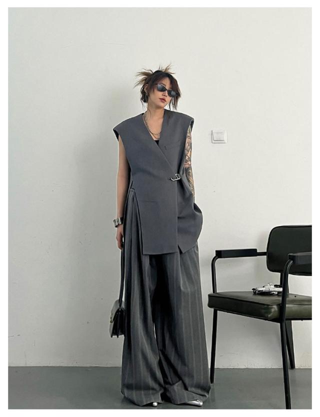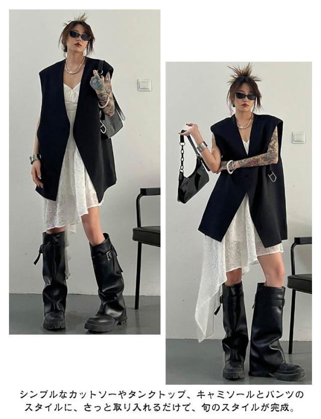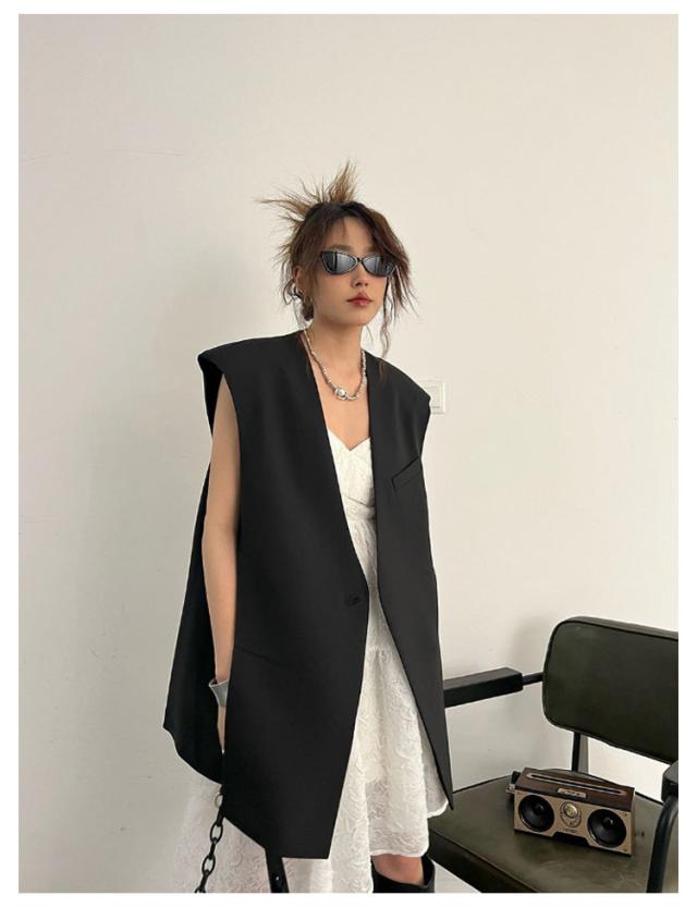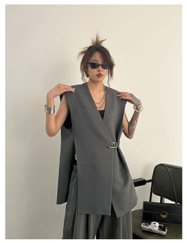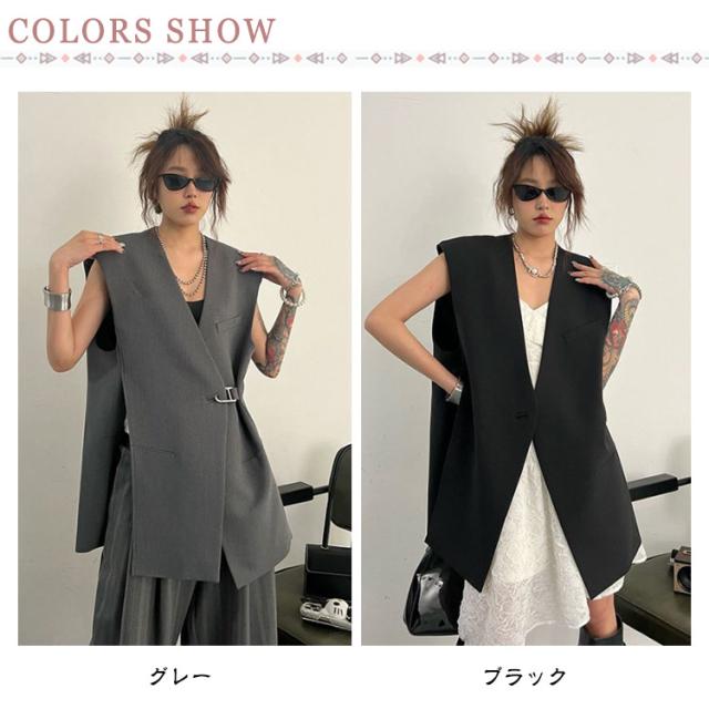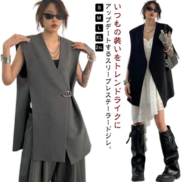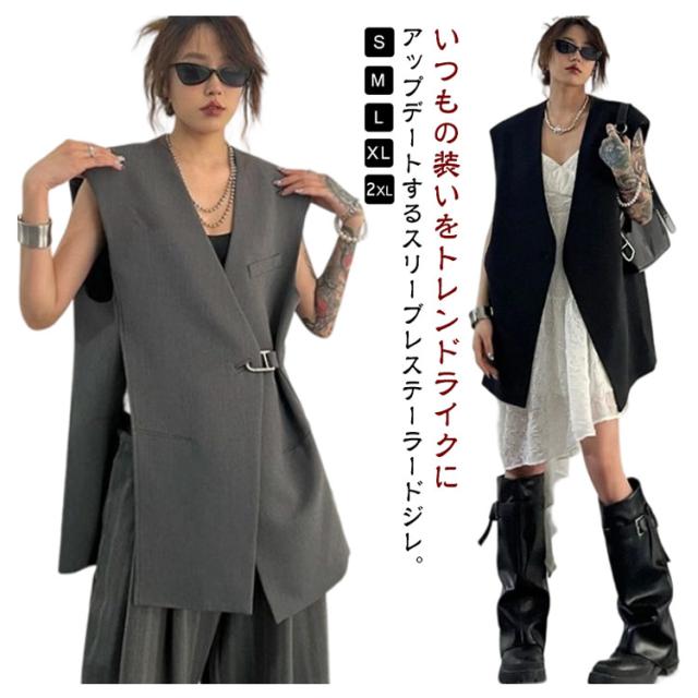 ベスト レディース スーツベスト ロング ロングベスト 春 テーラードベスト ジレ 無地 テーラード ノースリーブ Vネック ジャケット シンプル 羽織り 前開き ジレ カジュアル 通勤 オフィス フォーマル エレガント きれいめ 黒 灰 ブラック グレー 20代 30代