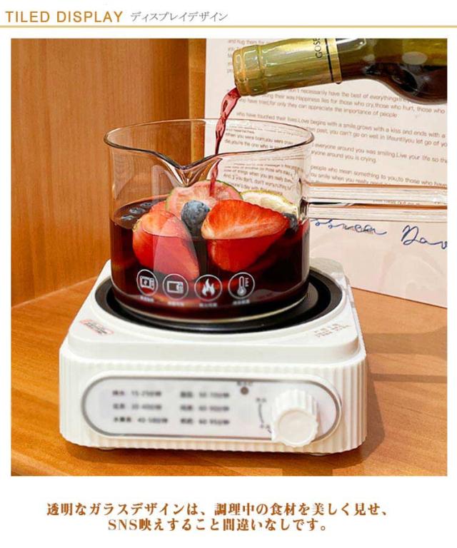 | 直火対応!耐熱ガラス鍋! 透明なガラスデザインは、調理中の食材を美しく見せ、SNS映えすること間違いなしです。 V型注ぎ口とU型ハンドルにより、使いやすさも抜群です。食洗機対応でお手入れも簡単。 | |