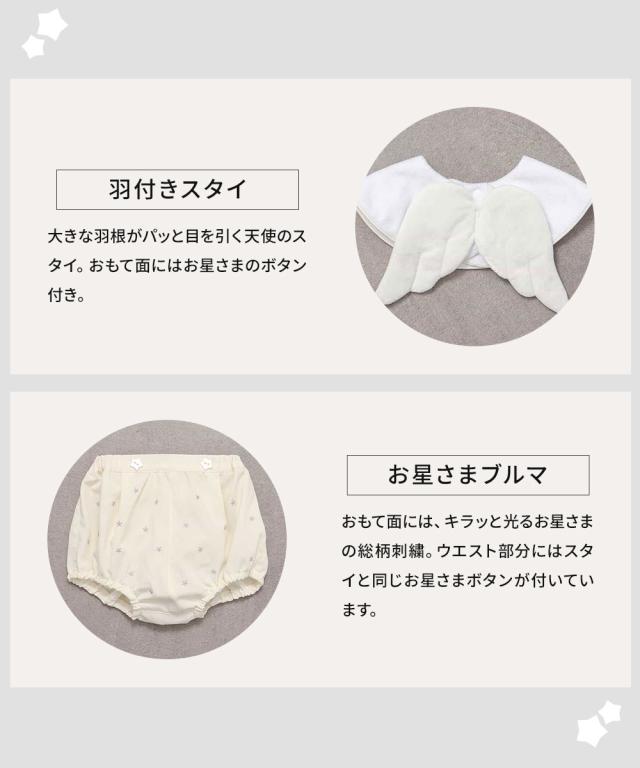 天使モチーフのスタイ・お星さまブルマ・ソックスの3点セット。