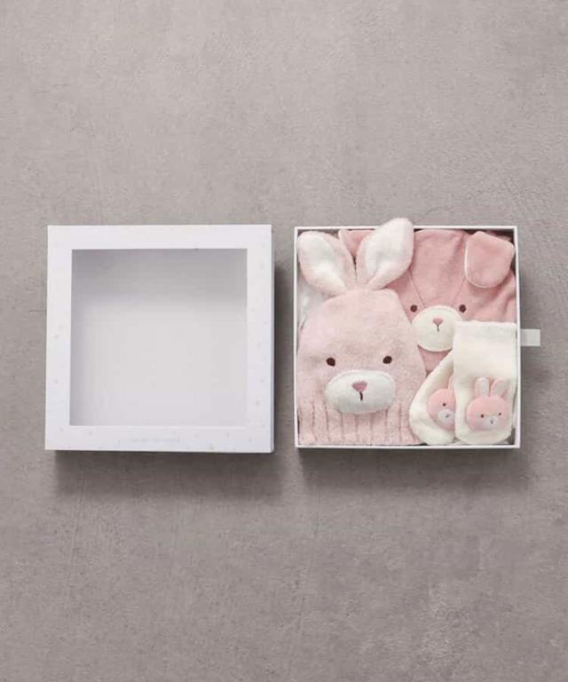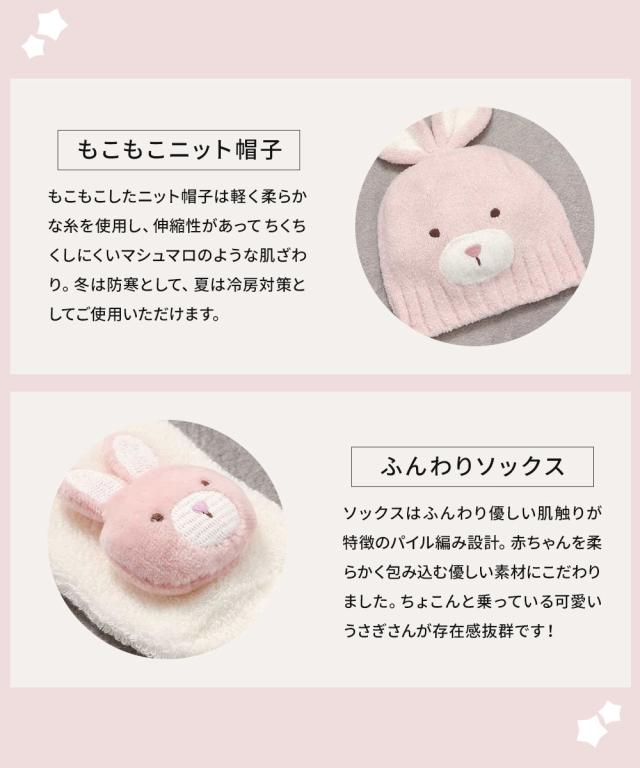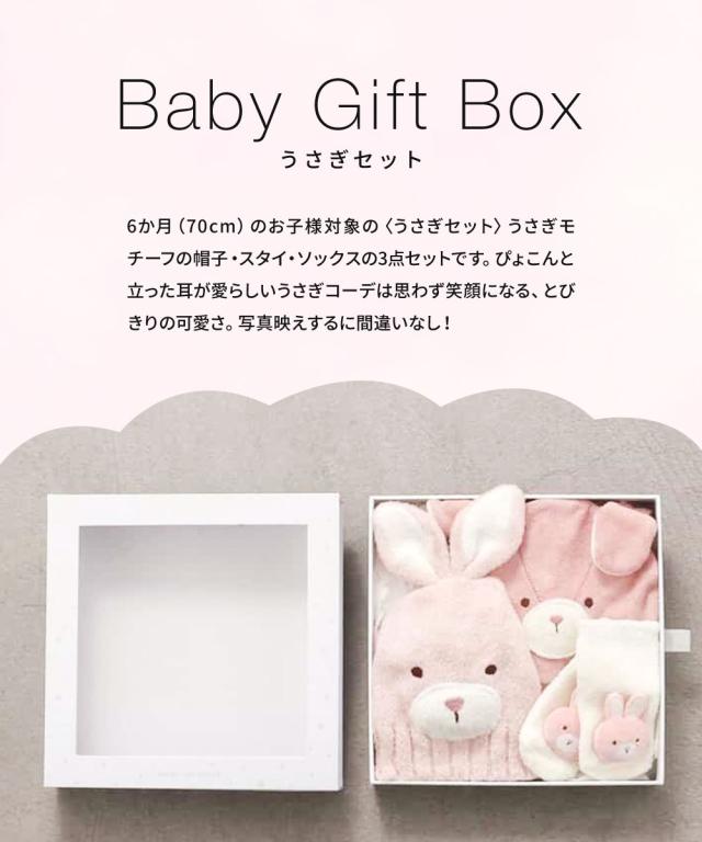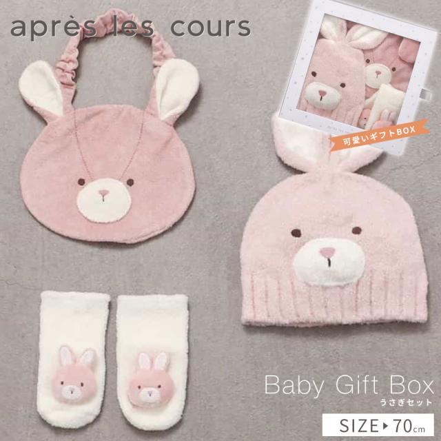 ベビー服 セット 女の子 男の子 おしゃれ 70 帽子 ニット帽 スタイ ソックス 靴下 ギフトボックス 赤ちゃん ベビー ベイビー 出産祝い 誕生日 プレゼント かわいい 衣類 子供服 記念撮影 6か月 F.O apres les cours アプレレクール Baby Gift Box うさぎセット V440915