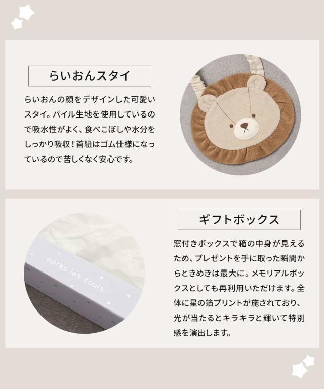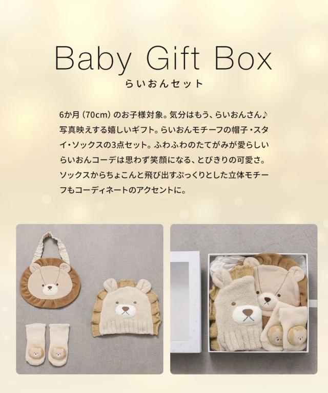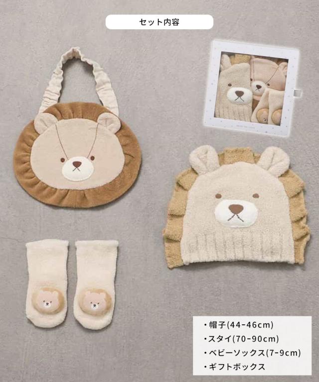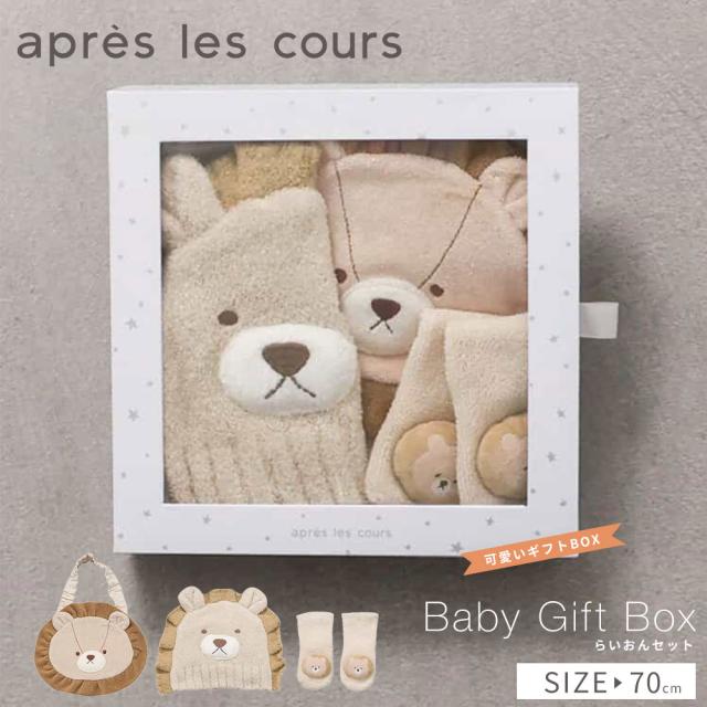 ベビー服 セット 女の子 男の子 おしゃれ 70 帽子 ニット帽 スタイ ソックス 靴下 ギフトボックス 赤ちゃん ベビー ベイビー 出産祝い 誕生日 プレゼント かわいい 衣類 子供服 記念撮影 6か月 F.O apres les cours アプレレクール Baby Gift Box らいおんセット V440925