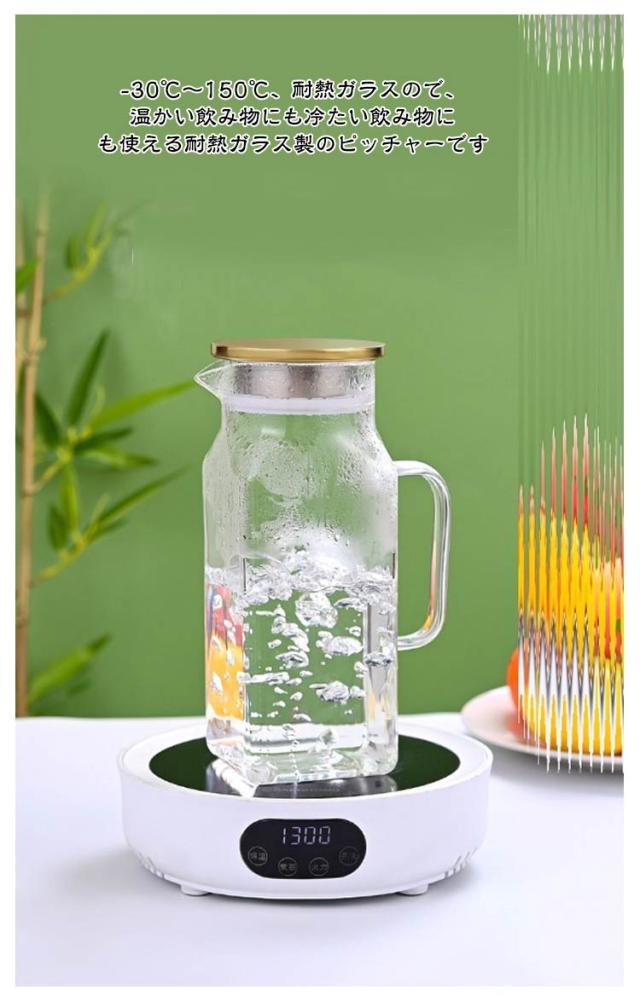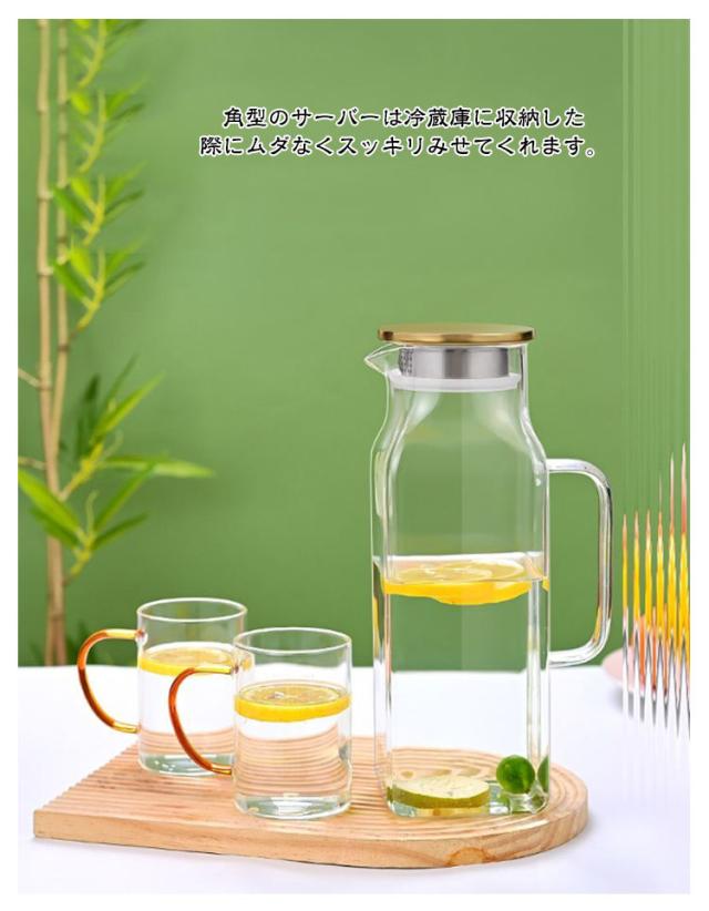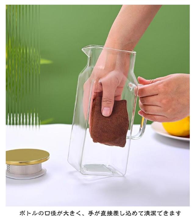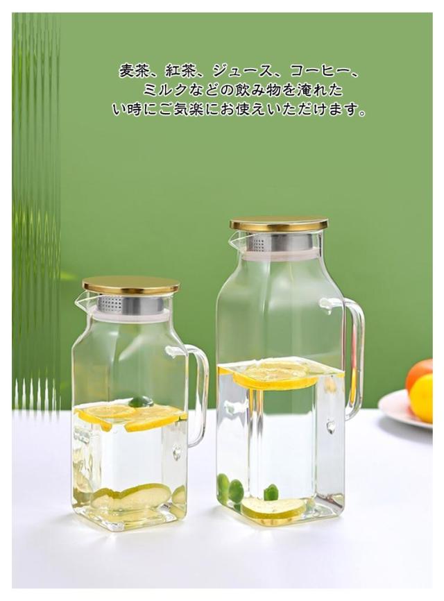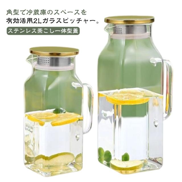| 角型で冷蔵庫のスペースを有効活用2Lガラスピッチャー。ステンレス茶こし一体型蓋! ボトルの口径が大きく、手が直接差し込めて清潔できます 麦茶、紅茶、ジュース、コーヒー、ミルクなどの飲み物を淹れたい時にご気楽にお使えいただけます。-30℃〜150℃、耐熱ガラスので、温かい飲み物にも冷たい飲み物にも使える耐熱ガラス製のピッチャーです 角型のサーバーは冷蔵庫に収納した際にムダなくスッキリみせてくれます。 | |