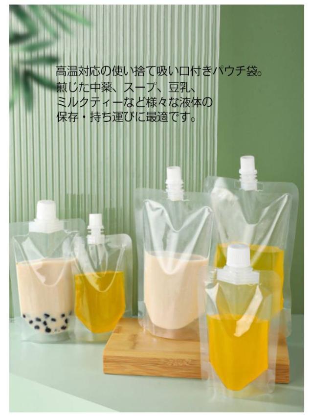 煎じ薬袋 中薬用パック パウチ袋 袋 100枚入り 吸い口付き スープパウチ 液体包装袋 飲み物用 密封容器 使い捨て 豆乳パック ドリンクバッグ 透明 注ぎ口付きパック スパウトパウチ ジュースパック 自立式 耐高温 30ml 50ml 100ml 150ml 200ml 250ml