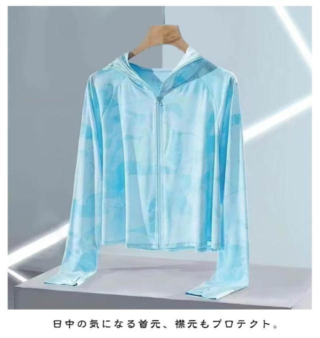 | 滑らかな肌触りの薄手パーカーです。 日中の気になる首元、襟元もプロテクト。 フードで頭からフェイス、首周りをガード。 指穴付きの袖口で手の甲、手の平もしっかりカバー。 紫外線を通しにくい加工を施されており、日焼けによるお肌のダメージが気になる季節に安心。 吸水速乾性があり、汗ばむ日でも快適に過ごせます。 | |