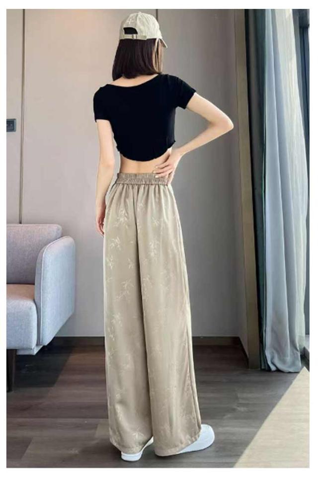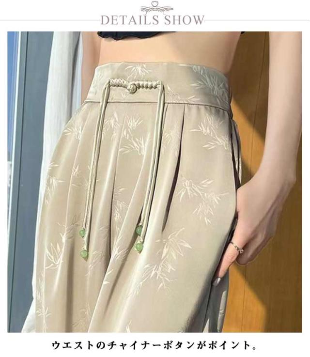 ゆったり 涼しい サテン ジャカード ロングパンツ 春夏 接触冷感 子供服 ウエストゴム ひんやり レディース イージーパンツ ワイドパンツ ストレートパンツ 薄手 きれいめ ワイドパンツ リラックスパンツ ボトムス 大きいサイズ カジュアル 春夏 夏服