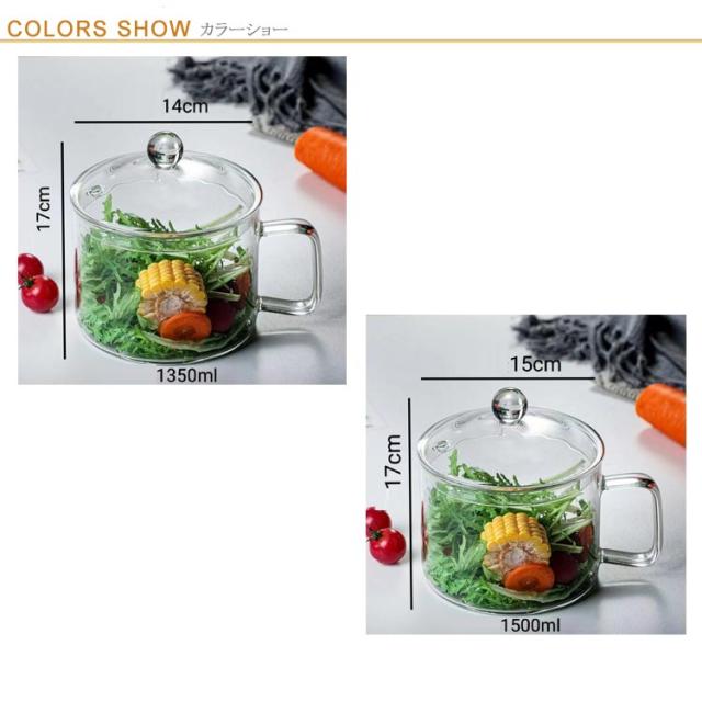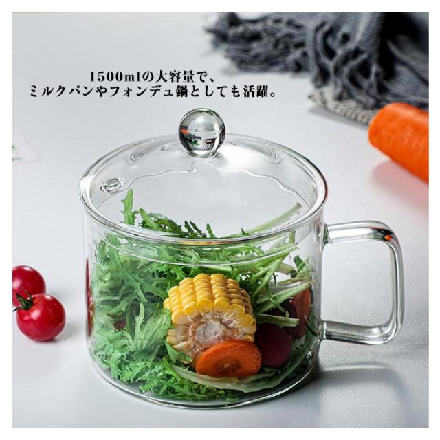 ガラス調理鍋 耐熱ガラス ガラス食器 1500ml ガラスポット ミルクピッチャー マルチポット 片手鍋 透明 大容量 赤ちゃん 直火可 離乳食 ふた付き 卓上鍋 ガラス鍋 ミルクパン おしゃれ ガラスパン ガラスハンドル 小鉢