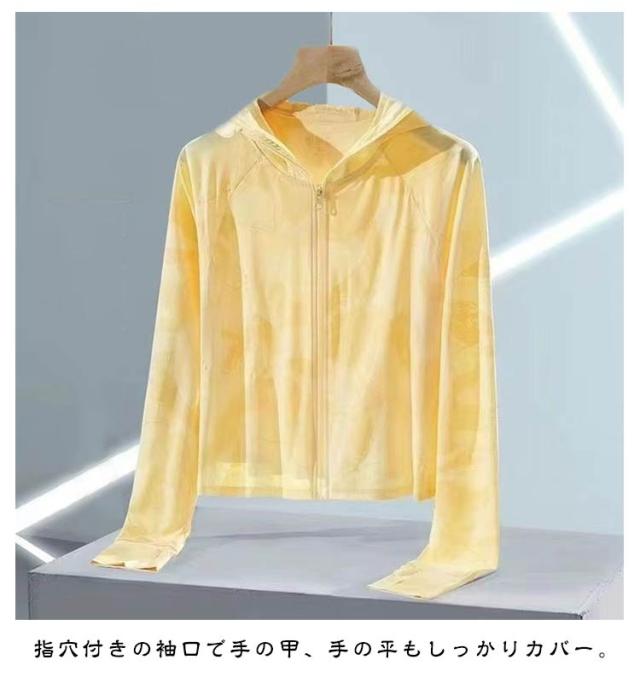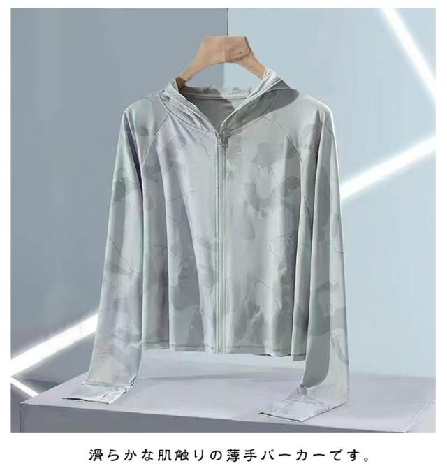 | 滑らかな肌触りの薄手パーカーです。 日中の気になる首元、襟元もプロテクト。 フードで頭からフェイス、首周りをガード。 指穴付きの袖口で手の甲、手の平もしっかりカバー。 紫外線を通しにくい加工を施されており、日焼けによるお肌のダメージが気になる季節に安心。 吸水速乾性があり、汗ばむ日でも快適に過ごせます。 | |