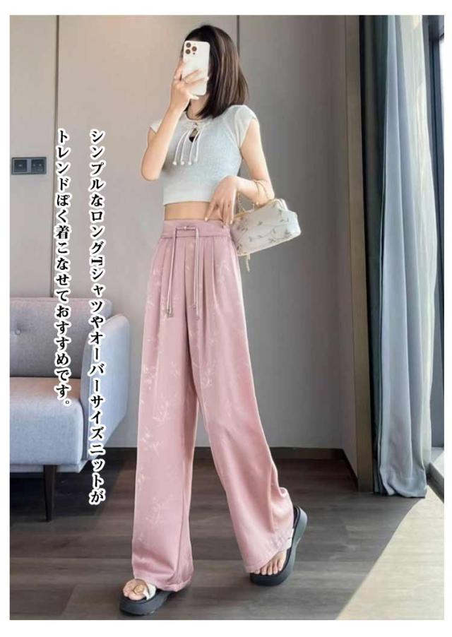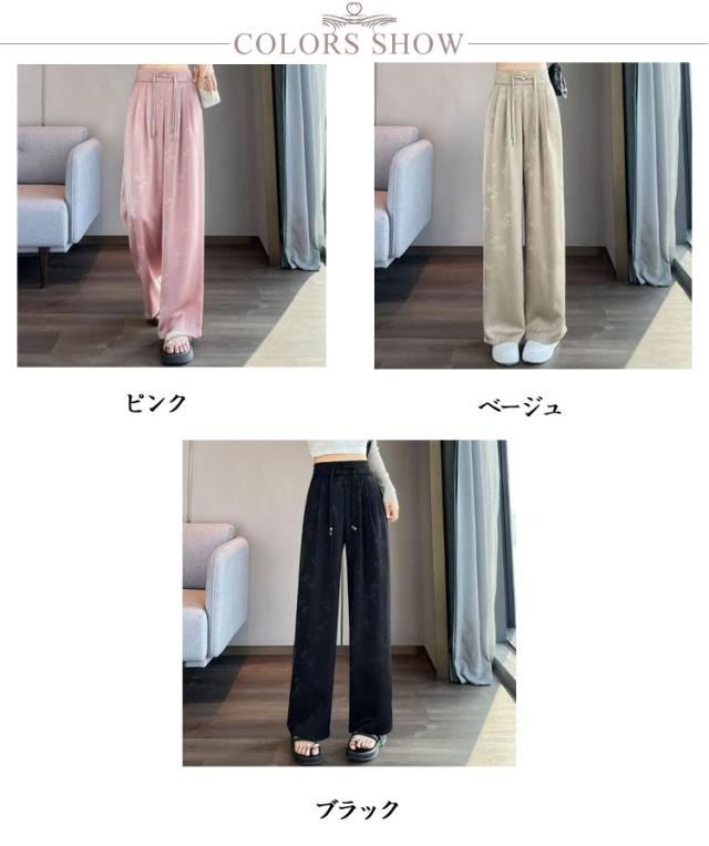 ゆったり 涼しい イージーパンツ 薄手 レディース 接触冷感 アイスシルクパンツ 春夏 サテン ワイドパンツ ジャカード カジュアル 子供服 ストレートパンツ ロングパンツ きれいめ ウエストゴム リラックスパンツ ボトムス 大きいサイズ ワイドパンツ 春夏 夏服