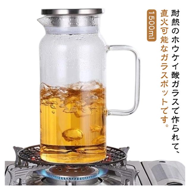 麦茶ポット 広口 大容量 冷水筒 ティーポット 耐熱ガラス 冷水ポット 取っ手付き 麦茶ポット 洗いやすい ガラスピッチャー 1.5L 1.5リットル ピッチャー 直火可 冷蔵庫 耐冷 耐熱 ガラス 水筒 水差し お茶 麦茶 ジュース 飲料ボトル