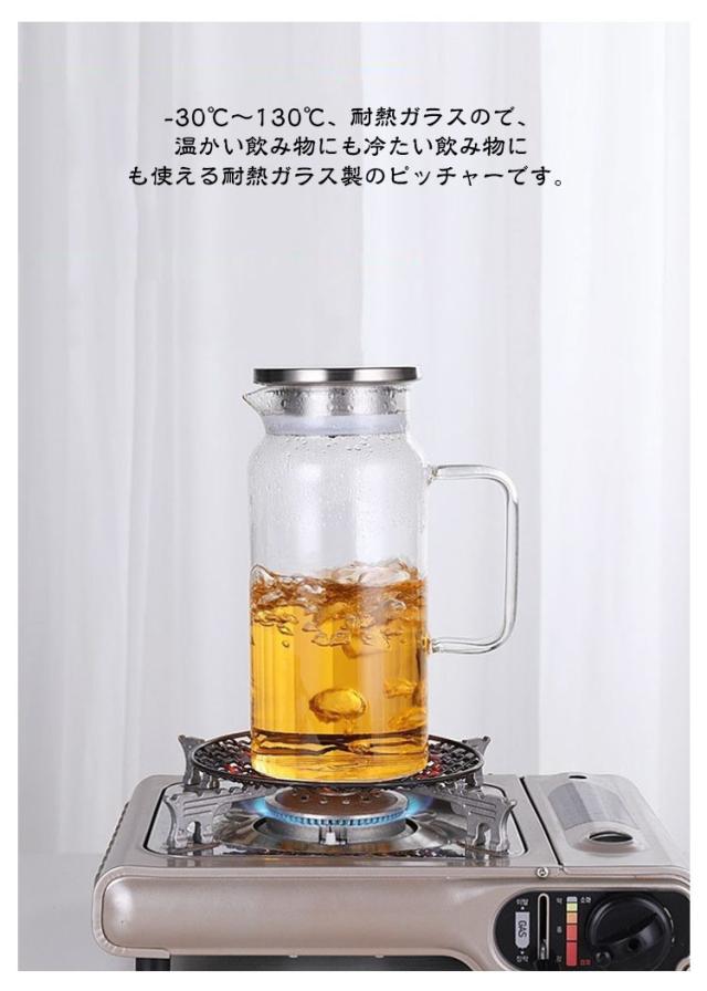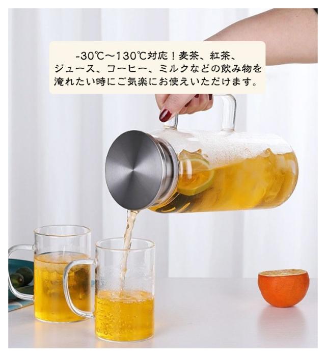 | 耐熱のホウケイ酸ガラスで作られて、直火可能なガラスポットです。 簡単に洗える!ボトルの口径が大きく、手が直接差し込めて清潔できます -30℃〜130℃対応!麦茶、紅茶、ジュース、コーヒー、ミルクなどの飲み物を淹れたい時にご気楽にお使えいただけます。-30℃〜130℃、耐熱ガラスので、温かい飲み物にも冷たい飲み物にも使える耐熱ガラス製のピッチャーです。 | |