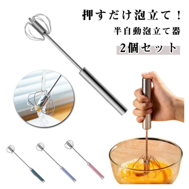 2個セット ステンレス製 2個セット 半自動回転 ケーキ道具 軽く押すだけでかくはん 半自動泡立て 圧力ロータリー ハンドブレンダー 泡立て器 製菓道具 家庭 業務用 離乳食 介護食 氷 砕ける 手押し卵ビーター