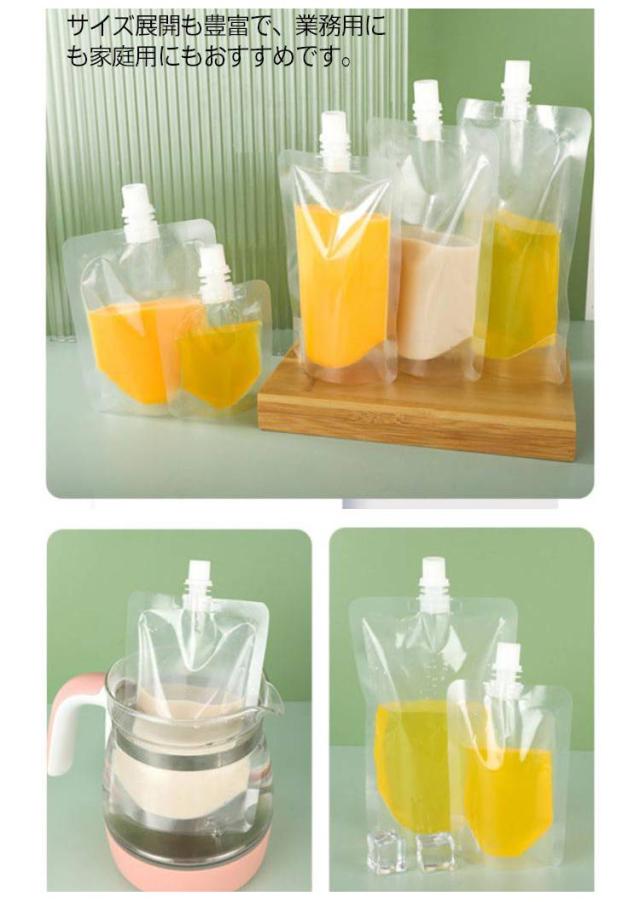 パウチ袋 飲み物用 袋 使い捨て 吸い口付き 100ml 透明 液体包装袋 スパウトパウチ ドリンクバッグ 煎じ薬袋 豆乳パック スープパウチ 100枚入り 注ぎ口付きパック 耐高温 ジュースパック 自立式 中薬用パック 30ml 50ml 密封容器 150ml 200ml 250ml