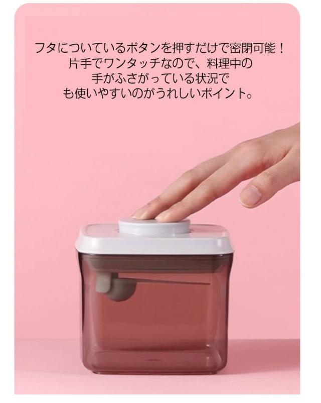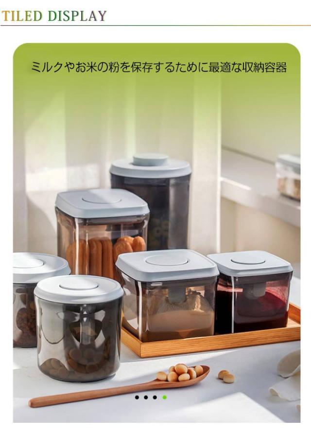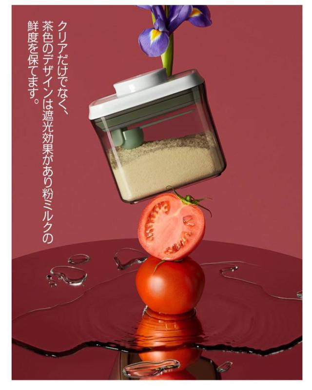 | ミルクやお米の粉を保存するために最適な収納容器 フタについているボタンを押すだけで密閉可能!片手でワンタッチなので、料理中の手がふさがっている状況でも使いやすいのがうれしいポイント。 クリアだけでなく、茶色のデザインは遮光効果があり粉ミルクの鮮度を保てます。 フタ部分はスプーン収納所があり、サイズ違いスプーンにも対応できます。 コンパクトなサイズ、外遊びや旅行に大変便利なアイテムです。 粉ミルクだけでなく、米やナッツなどの保存容器としてもおすすめ。 | |