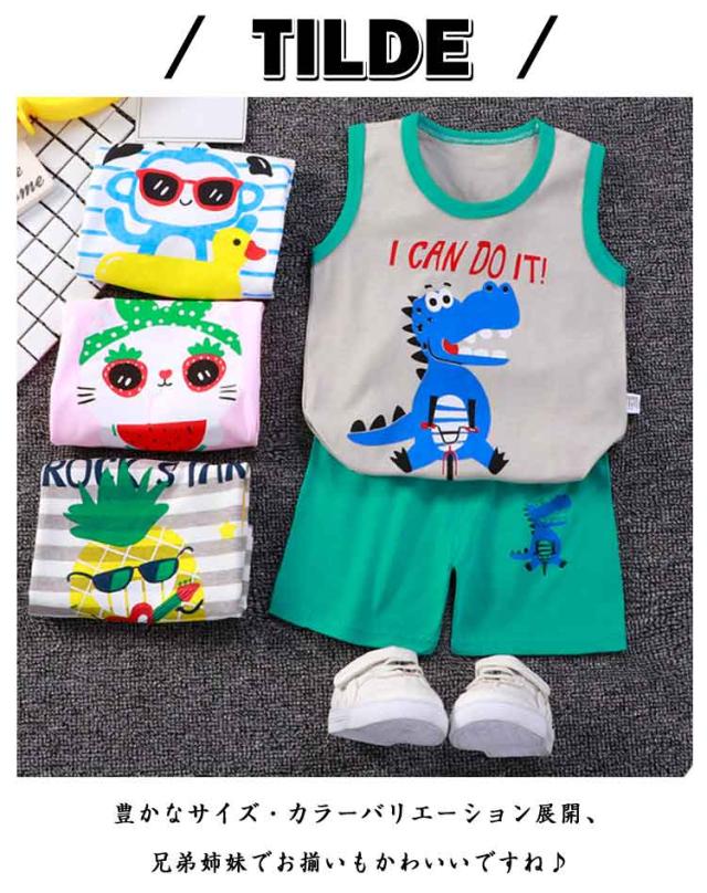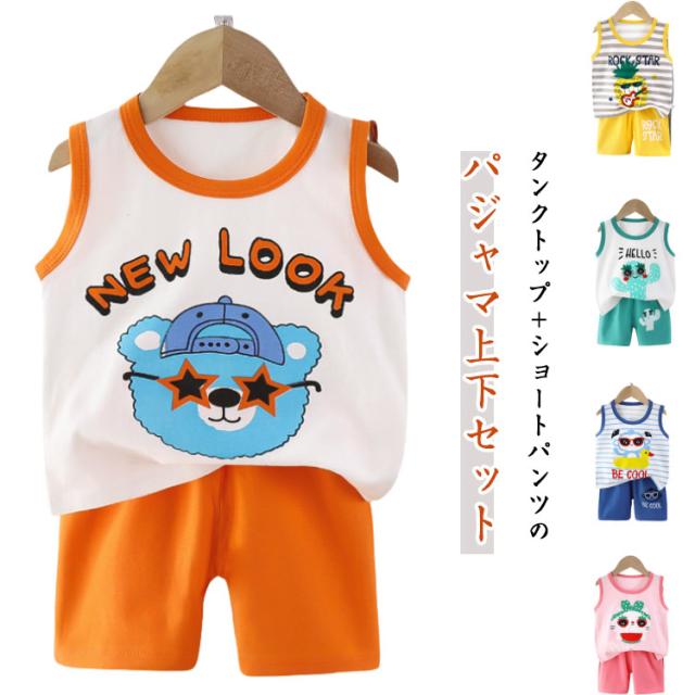タンクトップ 夏 部屋着 ショートパンツ キッズ 男の子 薄手 ノースリーブ おしゃれ パジャマセットアップ 女の子 可愛い 綿 肌着 総柄 子供 ルームウェア 柔らか 軽い 快適 小学生 お洒落 シンプル 兄妹お揃い 寝間着 入園グッズ 入園準備
