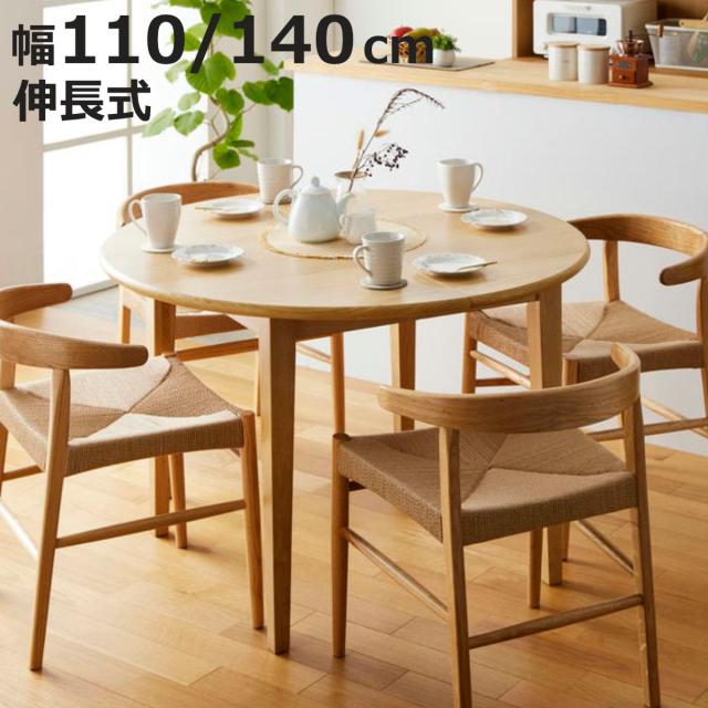 ダイニングテーブル 伸長式 幅110cm 幅140cm 円型 楕円形 ( テーブル 食卓テーブル 1人用 2人用 4人用 机 木製 天然木 オーク 北欧 丸 伸縮テーブル ダイニング 食卓 リビング 木製テーブル おしゃれ 便利 来客 )