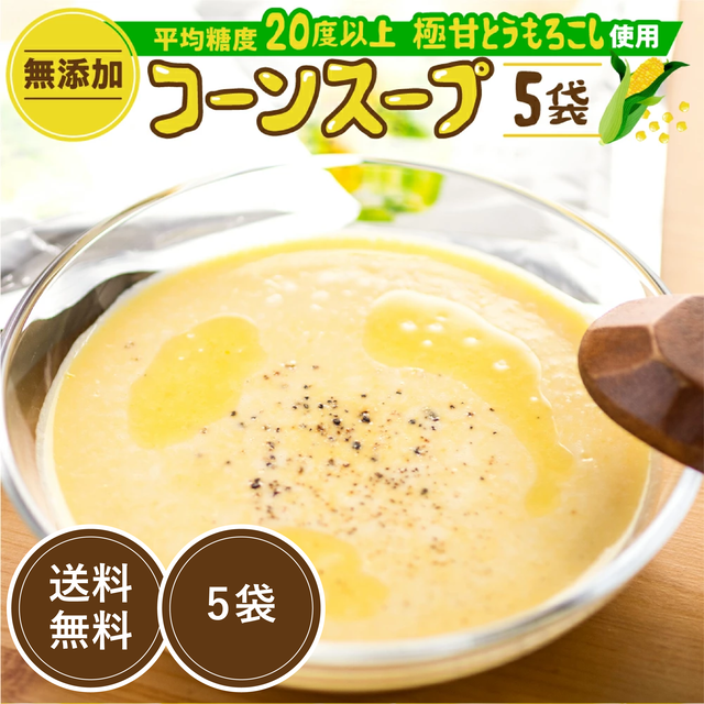 コーンスープの素 200ml×5袋入り【送料無料】レトルト 愛知県 田原市 トウモロコシ とうもろこし 簡単 常温 平均糖度20以上 極甘とうもろこし使用