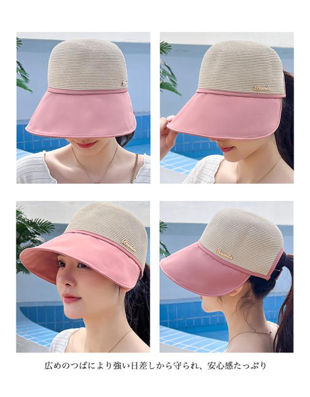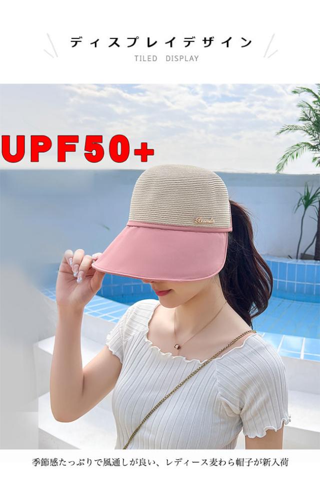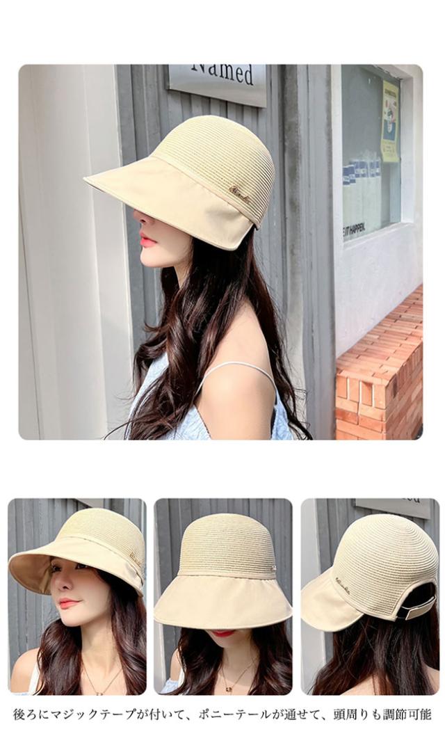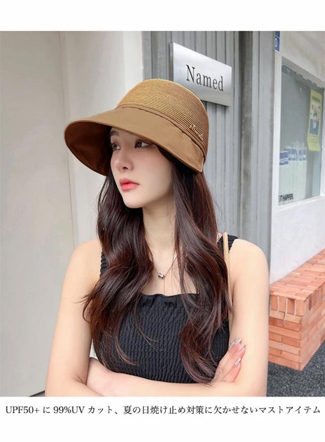 麦わら帽子 レディース 日よけ帽 サンバイザー UPF50+ UVカット キャップ 夏 帽子 日よけ帽子 小顔 キャスケット 麦わらキャップ 頭周り調節可 おしゃれ ファッション小物 紫外線 リゾート