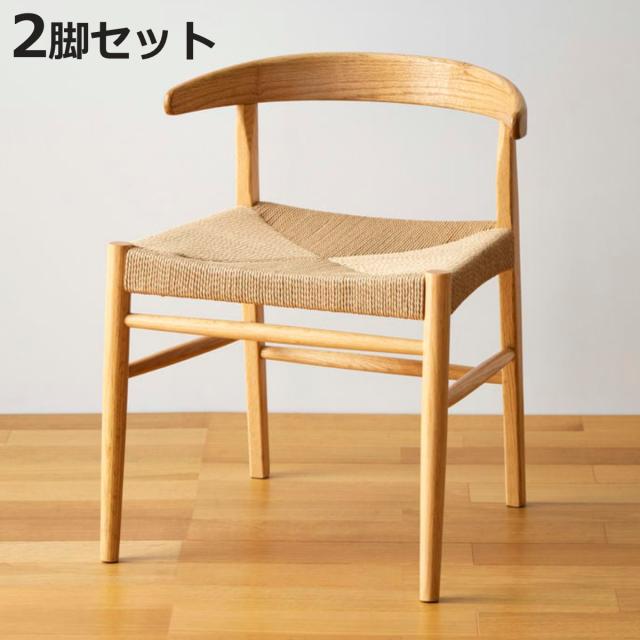 ダイニングチェア 2脚セット 座面高45cm ペーパーコード ( ダイニング チェア 木製 天然木 イス 椅子 北欧 デスクチェア 肘掛け 座面 広い 通気性 食卓椅子 リビングチェア 引っ掛けられる アームチェア おしゃれ )