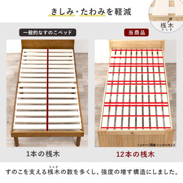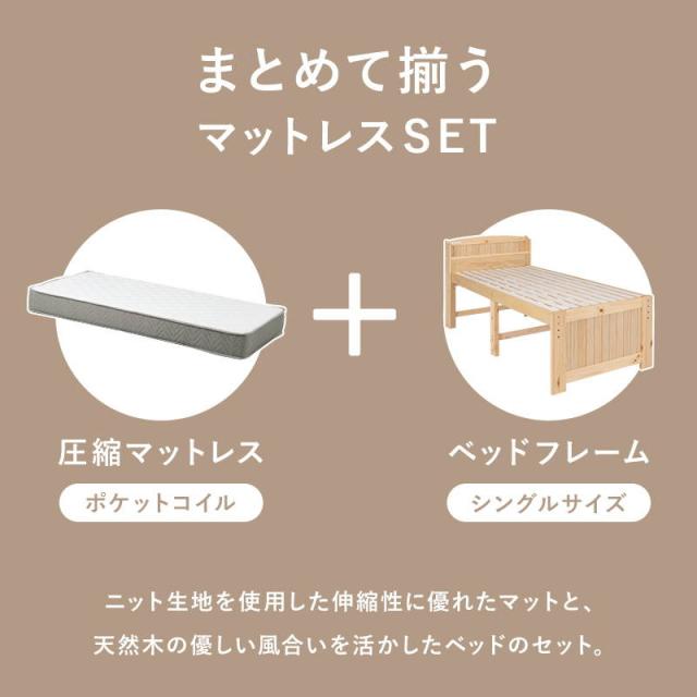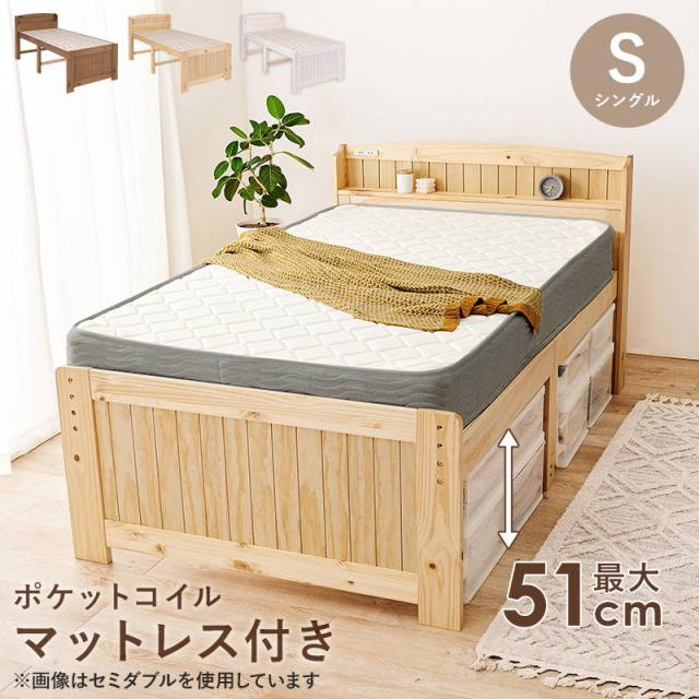 シングルベッド フレーム マットレス付き 木製 すのこ ポケットコイルマットレスセット 高さ3段階調節