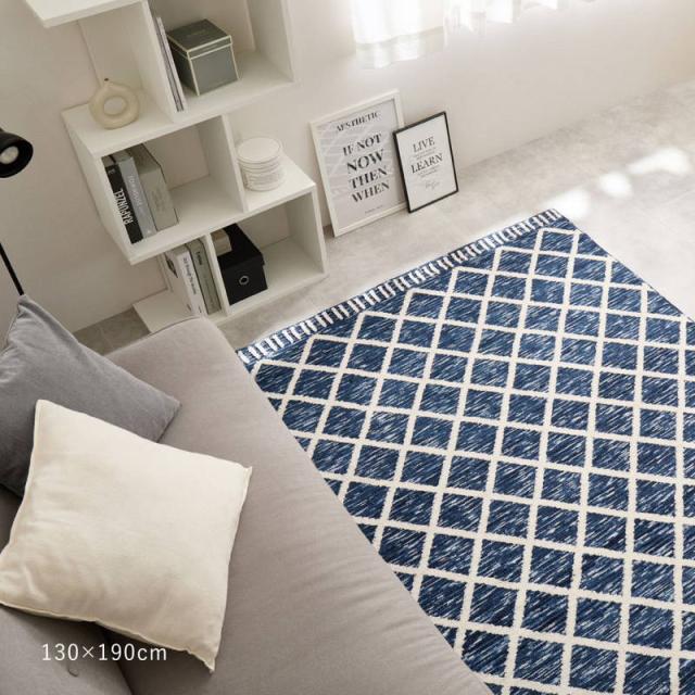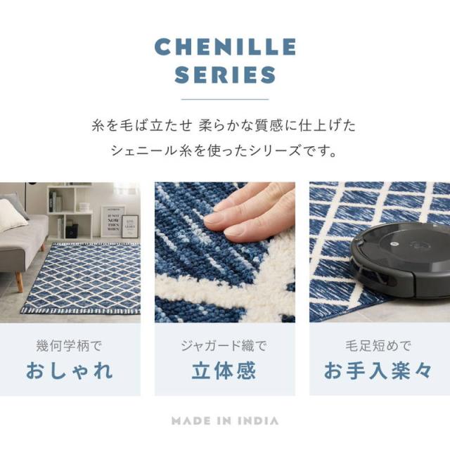 ラグマット カーペット シェニールラグ アイラ 130x190cm ジャガード織 幾何学柄 畳める 滑り止め付き