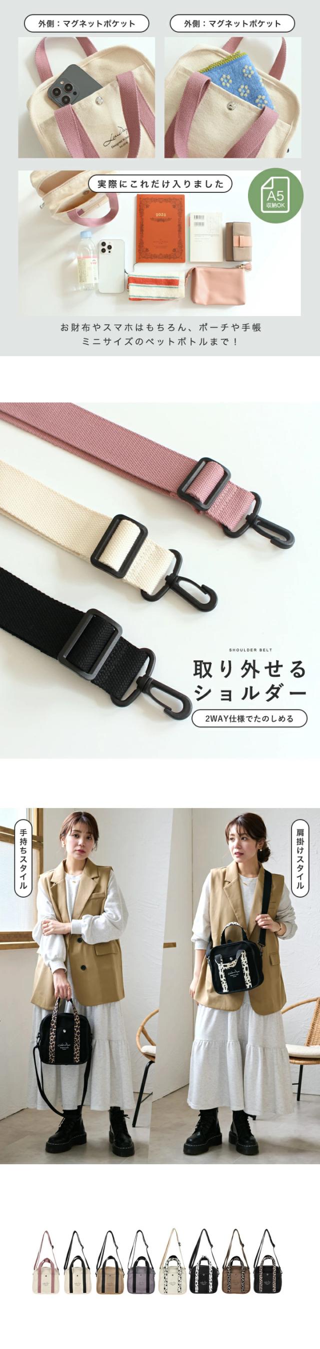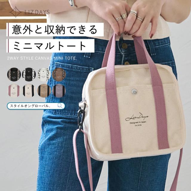 ショルダーバッグ 軽量 レディース トートバッグ キャンバス ミニバッグ 2way トート ショルダー 小さめ ファスナー付き おしゃれ LIZDAYS リズデイズ 大人 ミニトート キャンバスバッグ 斜め掛け 肩掛け ナチュラル 無地 アニマル お出かけ【lz-70615】