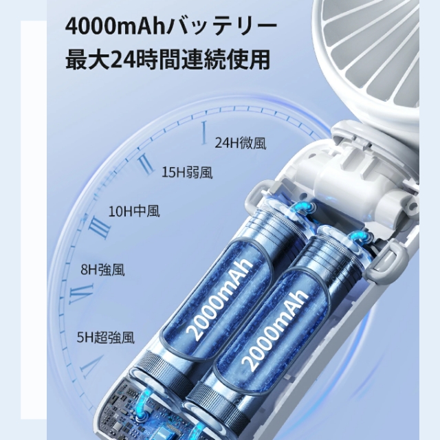 ハンディ扇風機 静音 DCモーター ハンディファン 液晶LEDディスプレイ 手持ち扇風機 折りたたみ 携帯扇風機 4000mAh大容量バッテリー 最大24時間連続使用 ポータブル扇風機 卓上スタンド 通勤 通学 アウトドア 熱中症対策 ストラップ付き
